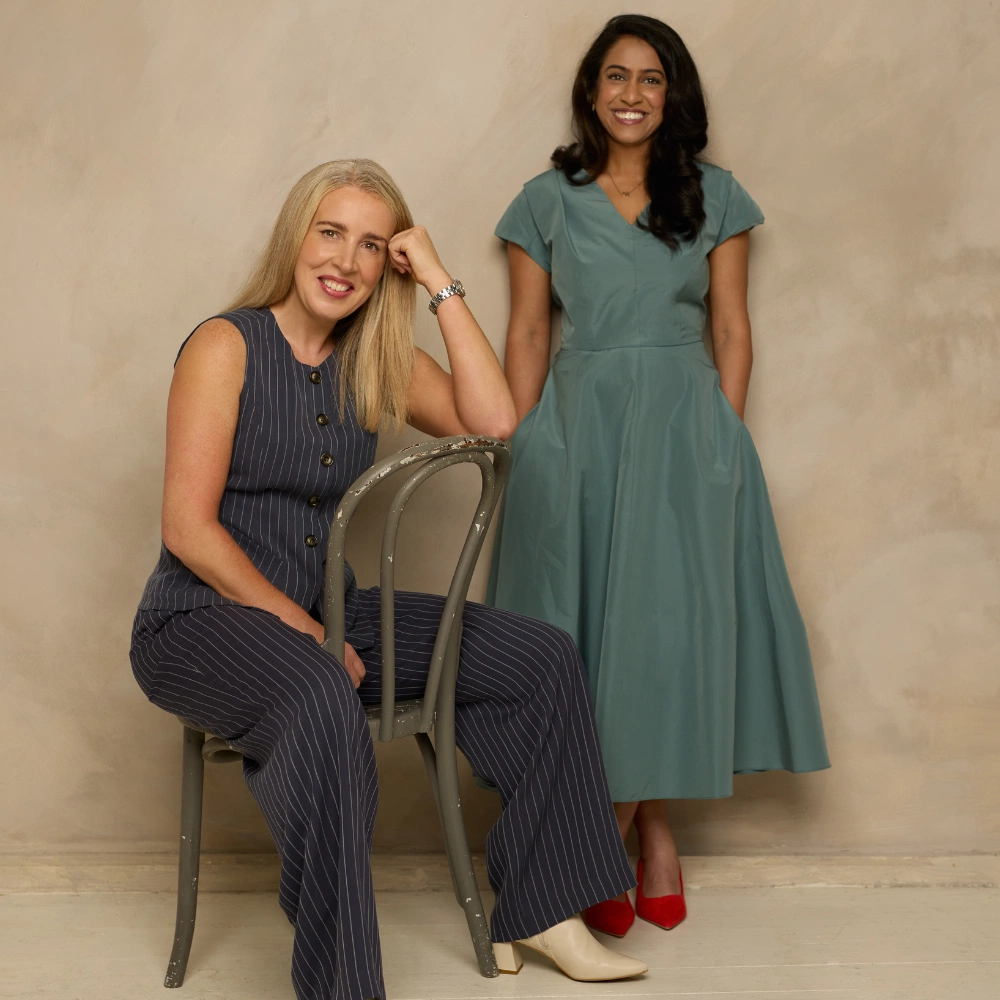Styling credits: Ashling Cunningham wears Italian crepe dress, And Tate, €850 at Emporium Kalu. Anne Sheehan wears jacquard dress, Natan, €939 at Emporium Kalu; velvet courts, Ted Baker, €135.95 at zalando.ie. Siobhan Noble wears satin pleated dress, Amsale, €1,050 at Emporium Kalu; leather courts, €65 at Marks & Spencer. Kelly McKillen wears pinstripe waistcoat, €129; and trousers, €139; both Whistles at Brown Thomas; cream boots, Dwrs, €149.99 at styledby.ie. Shreya Aggarwal wears fit and flare dress, Weekend Max Mara, €325 at Brown Thomas; suede courts, €65 at Marks & Spencer. Adebola Olomo wears blouse, Avn, €339 at Emporium Kalu; tapered trousers, €120 at Marks & Spencer.