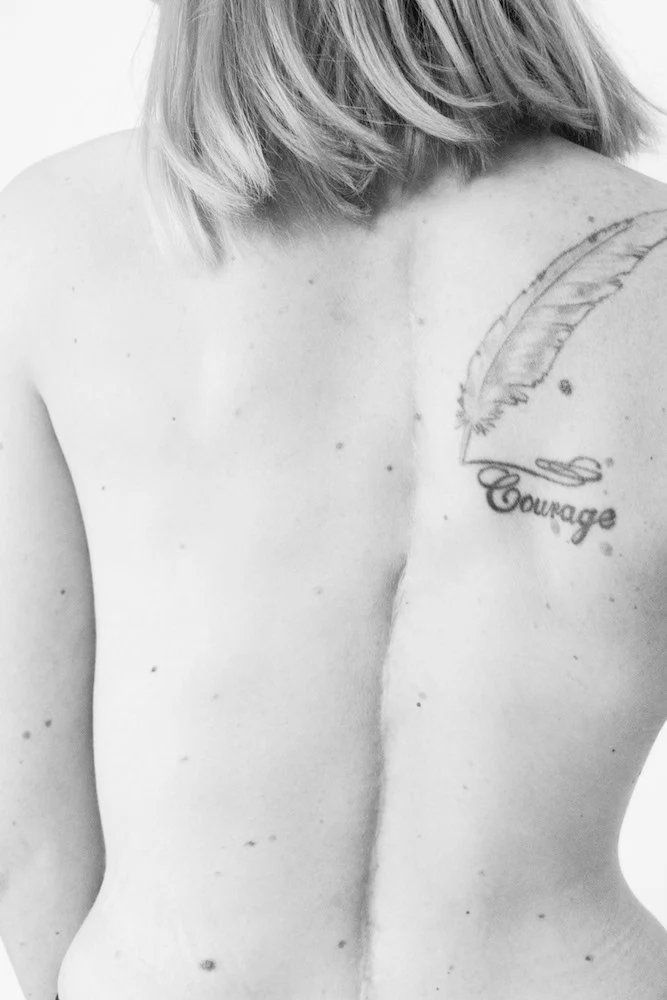 Looking back on our journey, I wish I could have been kinder to you and allowed you time to heal. I wish we could have met the friends I have now when we needed them most. I wish I could reassure my younger self that you weren’t a monster or the enemy. Today, when I look at you, I see something beautiful and strong that deserves the utmost respect and gentleness in a world that too often implies I should try to change you. Instead, I choose to celebrate you by adorning you with art and showing you off with fashion. I wear our scars with pride. I’m ready, more than anything else, to love and celebrate your power and strength.