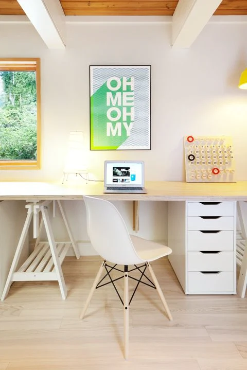 - You don’t have to buy ugly office lighting just because this is an office space; you also don’t need to stick to the office department of a homeware store; opt for soft lighting that creates a relaxing atmosphere instead of an industrial bulb that may have once been used as part of an interrogation. Be nice to yourself! IKEA’s general desk collection has far more to offer than their specific office desks so make sure to browse in all homeware departments.
