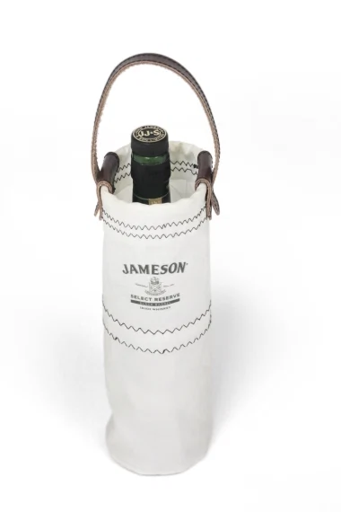 Mamukko, two Kinsale-based brothers who specialise in up-cycling sailing materials to fashion apparel, produced a whiskey holster bag from recycled sails and brown leather.