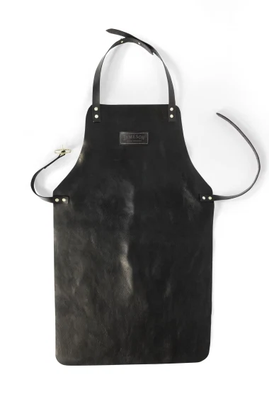 Garvan de Bruir, known for his eclectic workings with leather, created a bespoke black leather aporn.