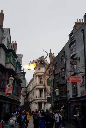We headed back towards the Wizarding World of Harry Potter via a street parade where the children shyly waved at Scooby-Doo, the animals from The Secret Life of Pets and the Simpsons.