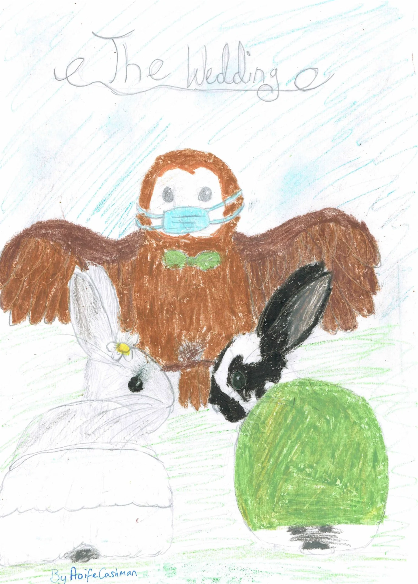 When one of Aoife Cashman’s beloved pet rabbits died at the beginning of the lockdown she was heartbroken. Chatting to her grandfather in Connemara, he encouraged her to write a story to cheer herself up, and so she did. Forget about the Owl & The Pussycat, wait until you meet Parnsip and Clover – two rabbits determined not to have their wedding plans thwarted by Covid-19. All drawings by Aoife Cashman.