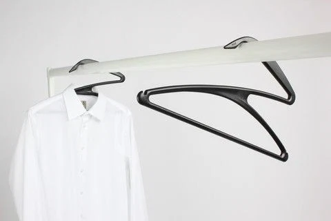 This clothes hanger’s clever design tilts on the rail to tell you it’s free and balances perfectly with clothes on it.