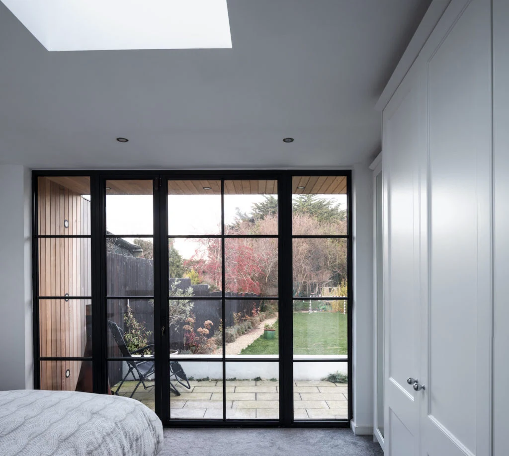 Initially, steel windows and doors were off the cards, due to budget, but Patrycja managed to source them for 10-15% cheaper in Poland, and these are used internally and externally. While oiled cedar cladding on the private wing has already silvered and the existing kitchen was also retained, but painted, both contributing to the overall feeling of warmth in the project.