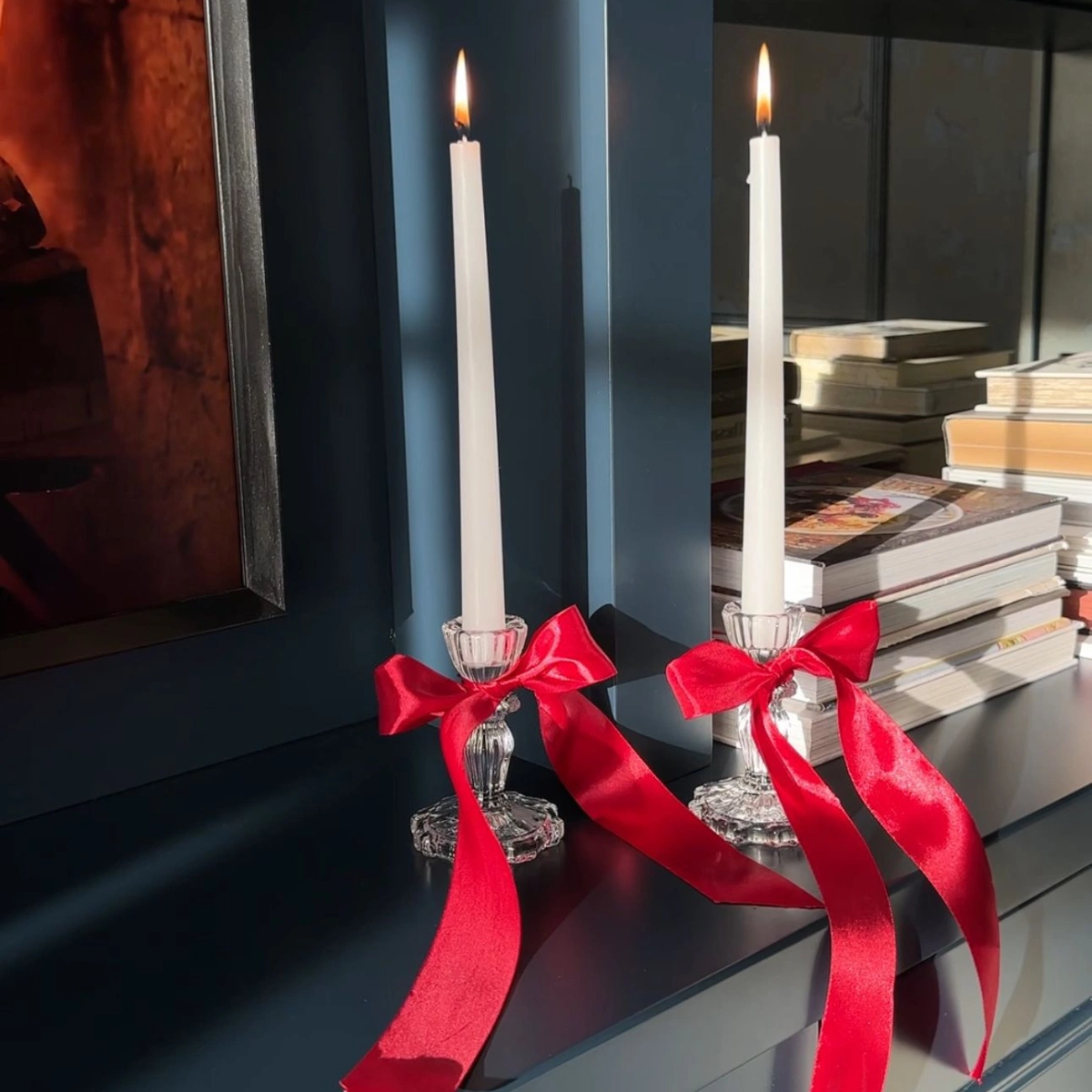 A simple roll of red or gold ribbon can do wonders for enhancing your festive setting. Whether it’s adding bows to wine glass stems, candle holders or hanging them on the Christmas tree itself, they’re a nice way to tie different decor accents together.