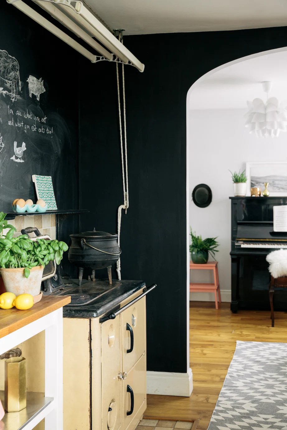 The house was liveable as soon as Kate and Justin moved in. “Although we did knock down a few walls to open it up as much as we could, it really was more about decorating than renovating,” Kate explains. “Justin spent all of his time pulling layers and layers of wallpaper off the walls and repainting them.” It was important to the couple to respect the history of the house. “We kept the old stove which was honestly Grandma’s pride and joy. I have great memories of her cleaning it out and keeping it stoked so the house was always warm and cosy. We also hung onto the Sacred Heart lamp that my grandma and Aunt Katie loved. She had incredible faith and that red light was really important to her.”