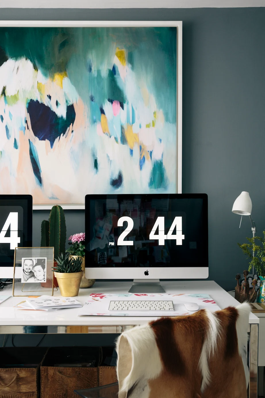 The couple turned a bedroom into an office to set up their business, Dusty Boy Designs