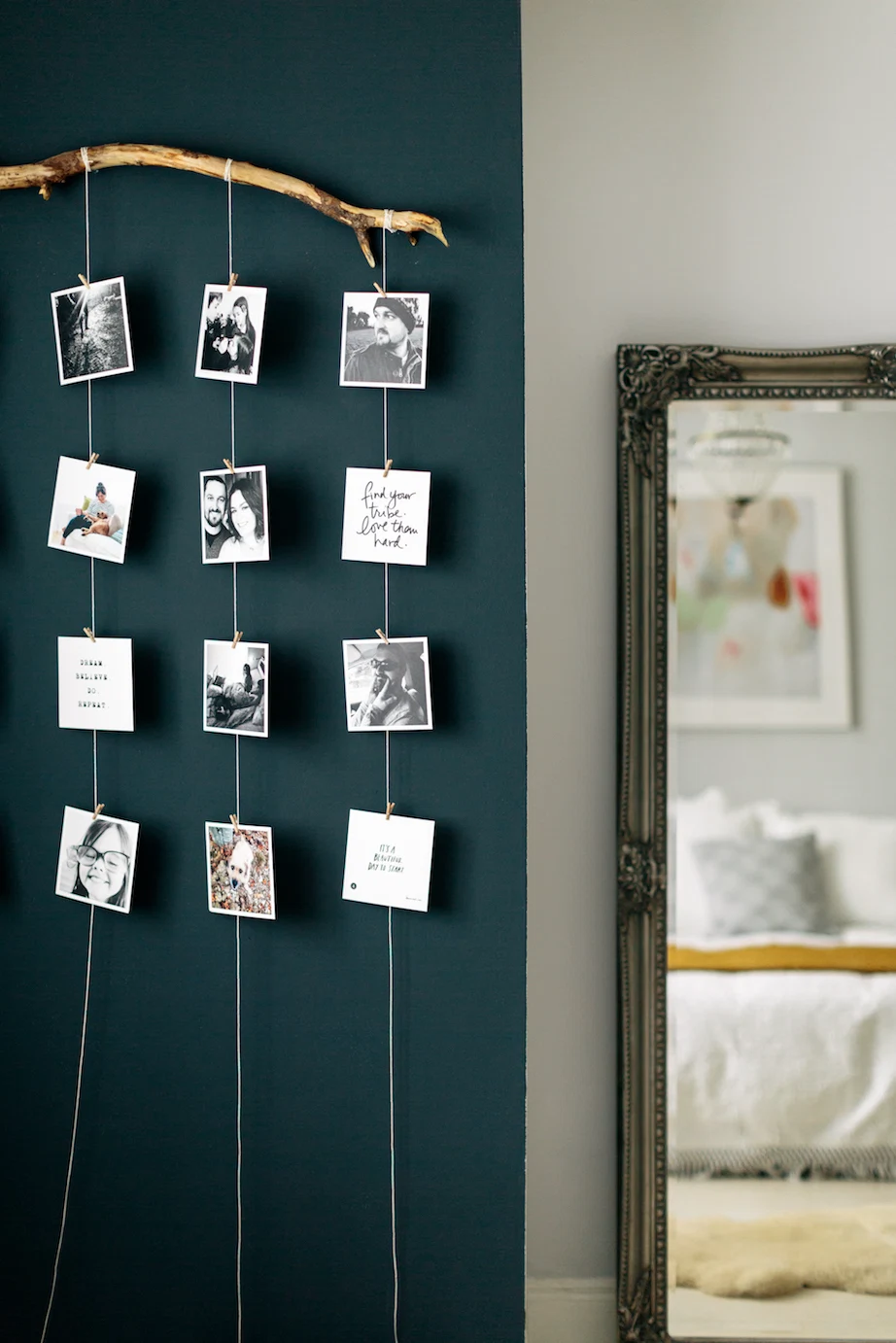 The two branches used to make the Instagram wall and wardrobe in the bedroom are both from trees, found when walking through the fields on the farm. The floating mantelpiece and coffee table wood are reclaimed wood that Justin discovered in one of the seven sheds that Kate’s grandad had in the garden.