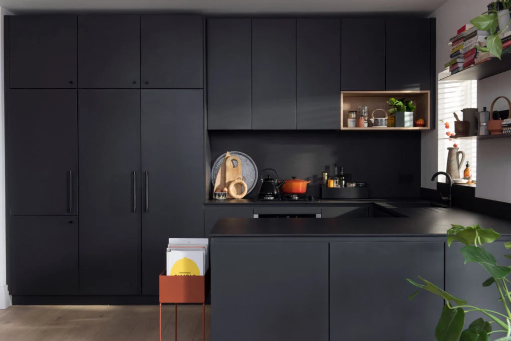 “I love the black kitchen,” Patricia explains. “As the space is open plan, I was determined that the kitchen itself should feel like a piece of furniture to help with the flow of the entire room. Little details like black plug sockets and the oak-insert really elevate it into something special.
