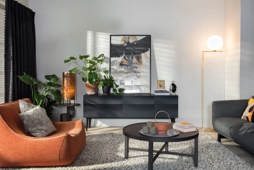 “The black furniture came as a natural consequence of having the black kitchen and wanting the room to work as a whole. The orange bits, like the Ligne Roset chair, I’ve had for years. I’m a believer in going for the colour you love and are drawn to, rather than playing it safe and not getting something because you’re scared you might not like it in the future.
