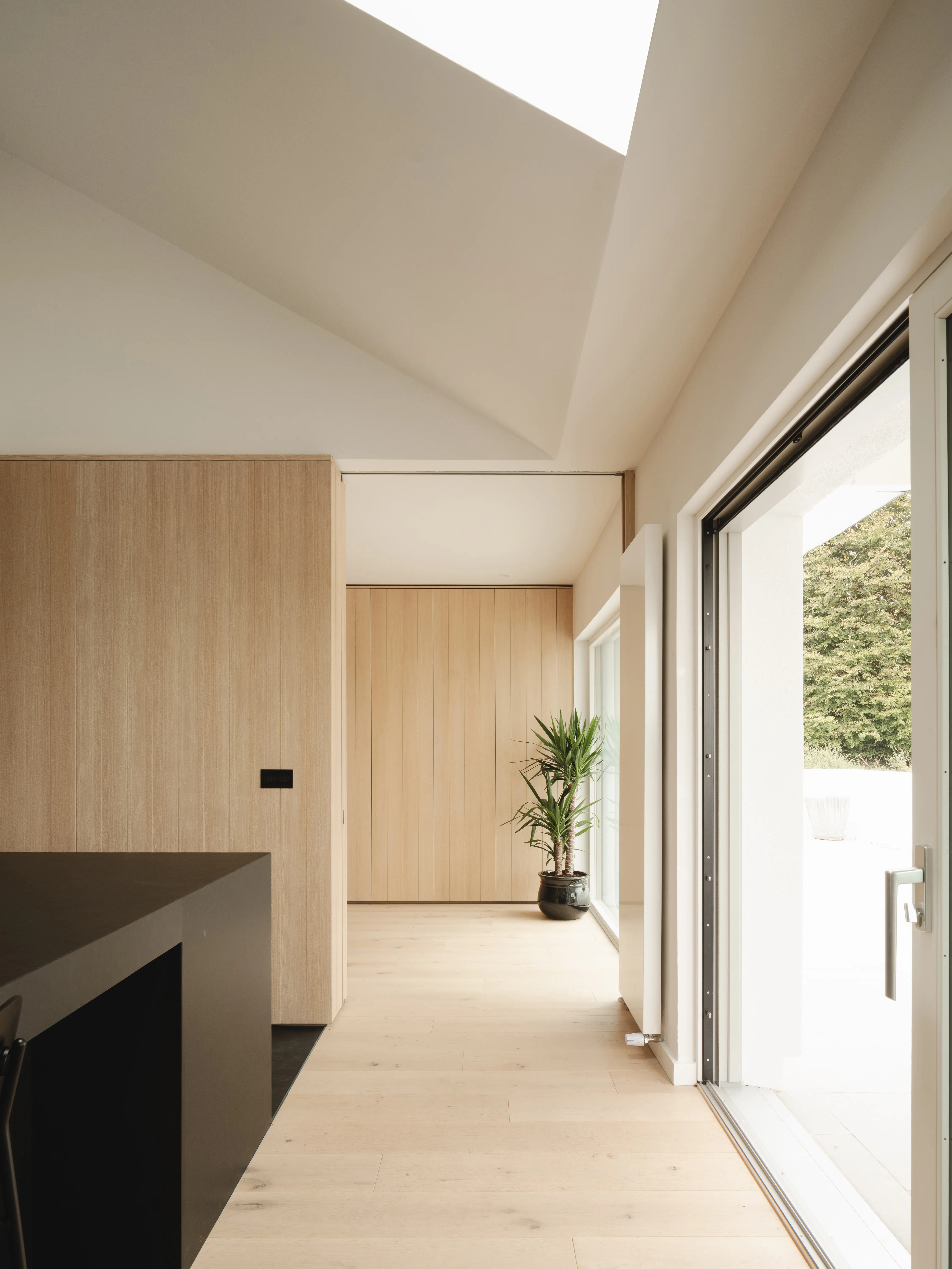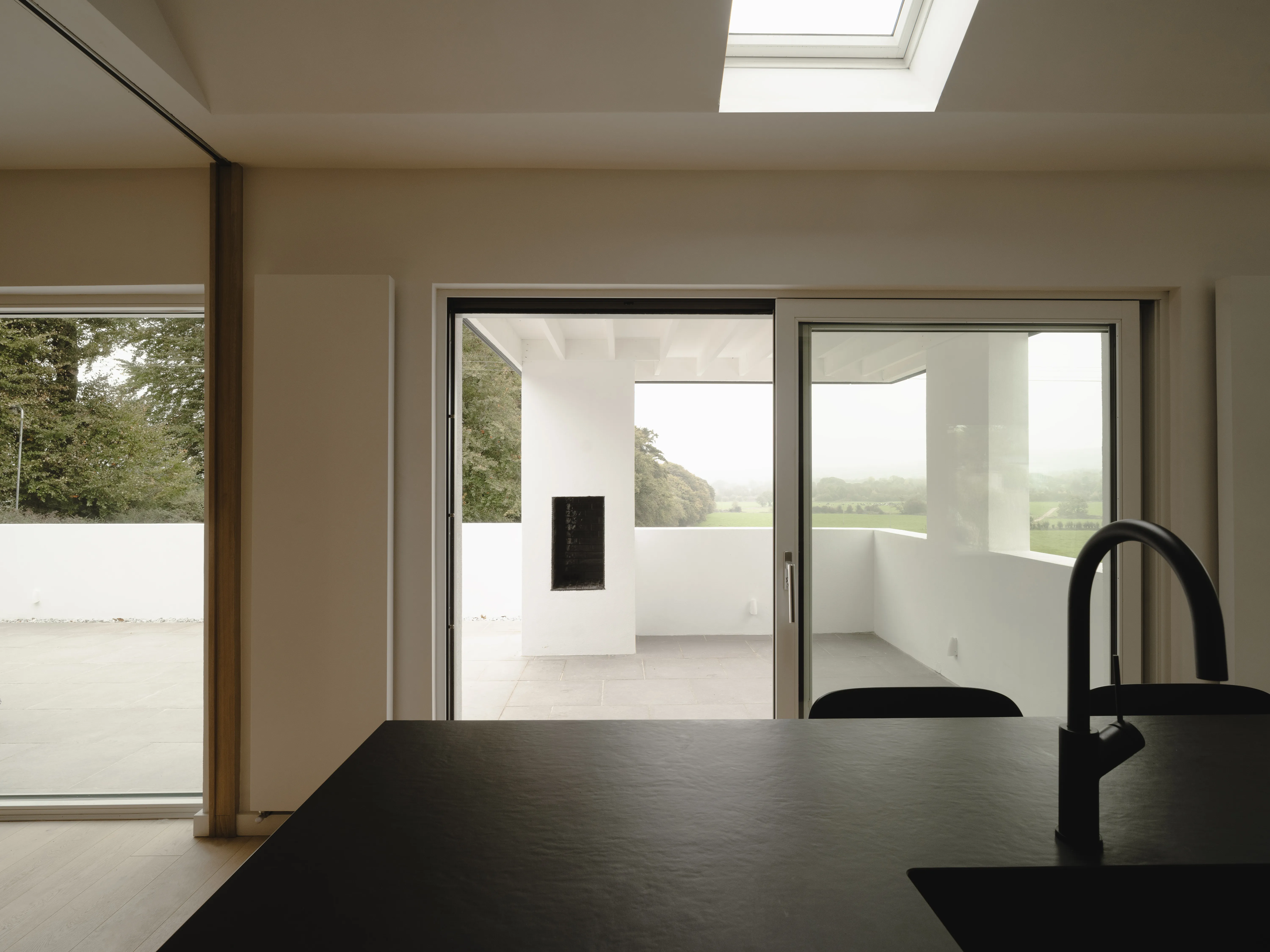 Changes were also made to create connections between the home and its location. “A key design move was coring a clear line of sight from front to back so that, on arrival, the view to the trees becomes the first moment you encounter. This amplifies the dual aspect of the site – town to the front and countryside to the rear – and draws in the sense of the landscape that runs alongside the house toward St Fanahan’s Well.”