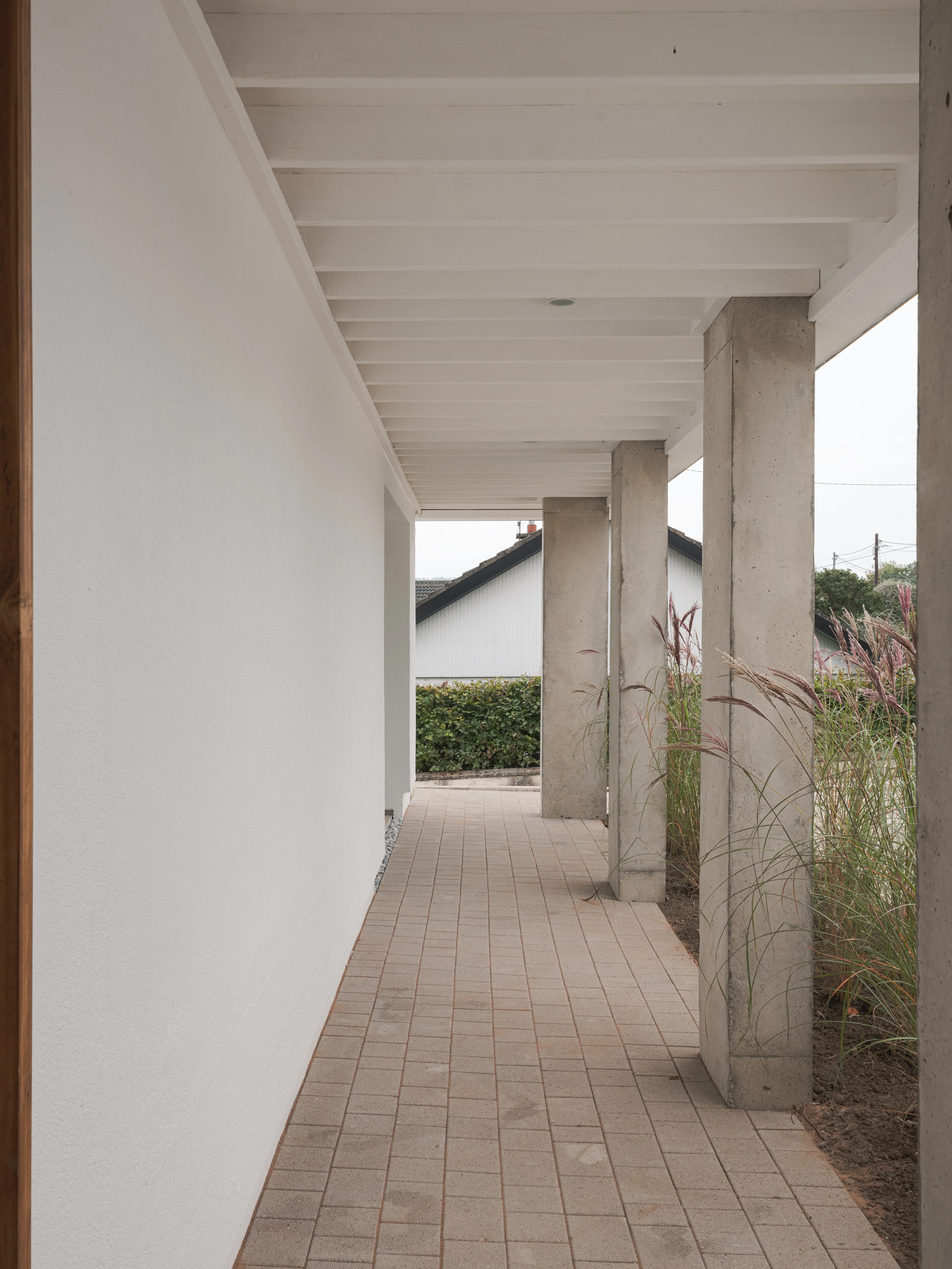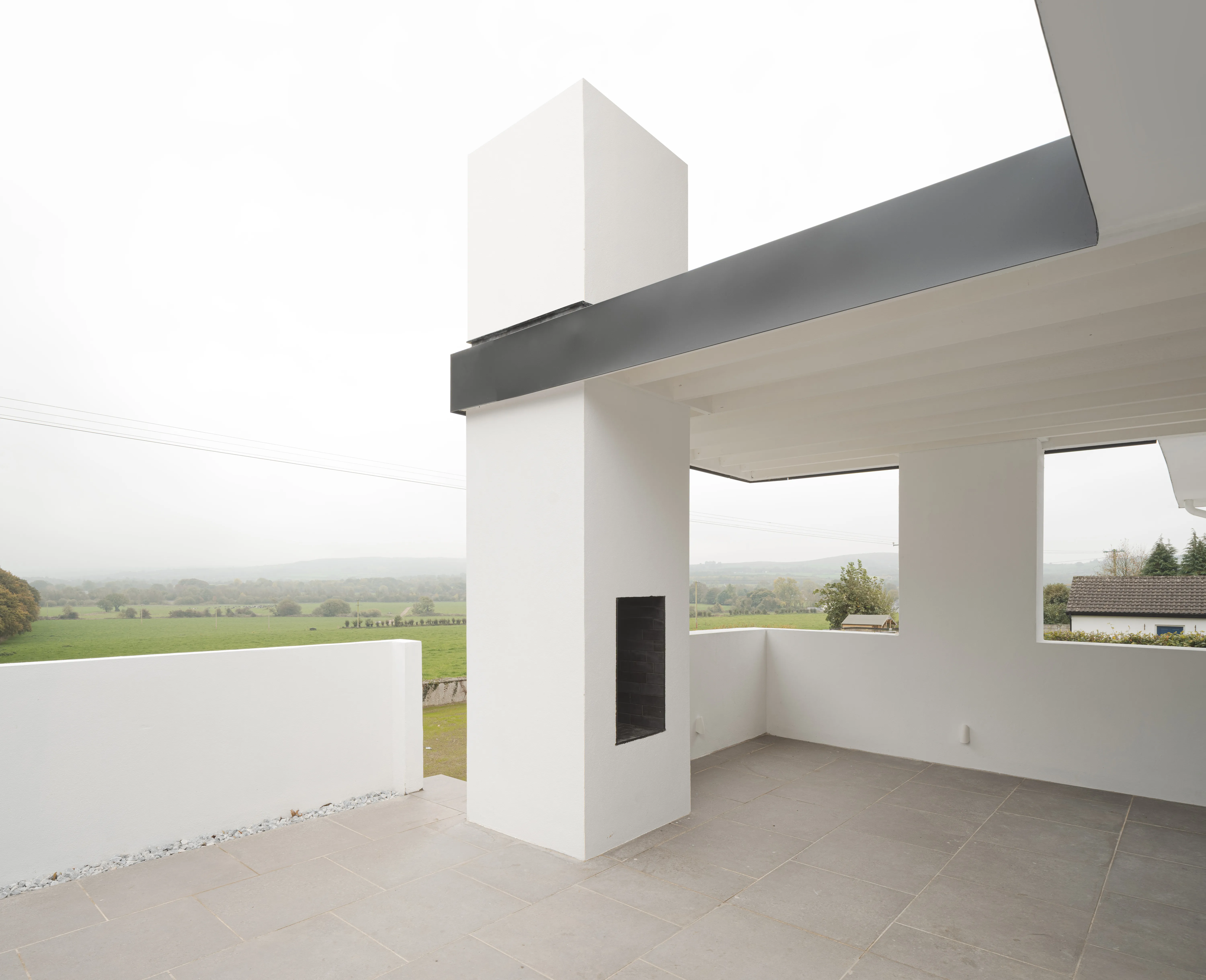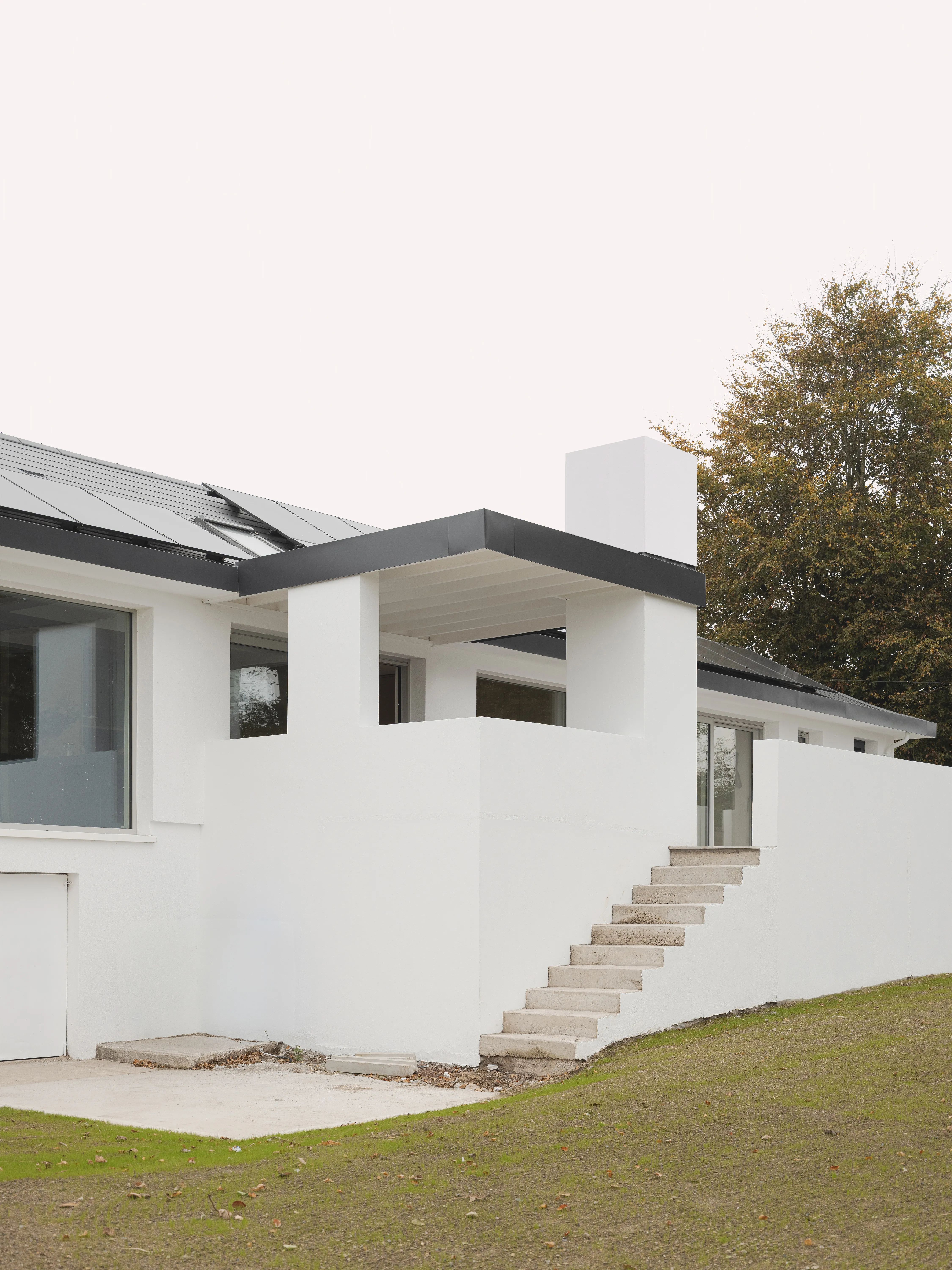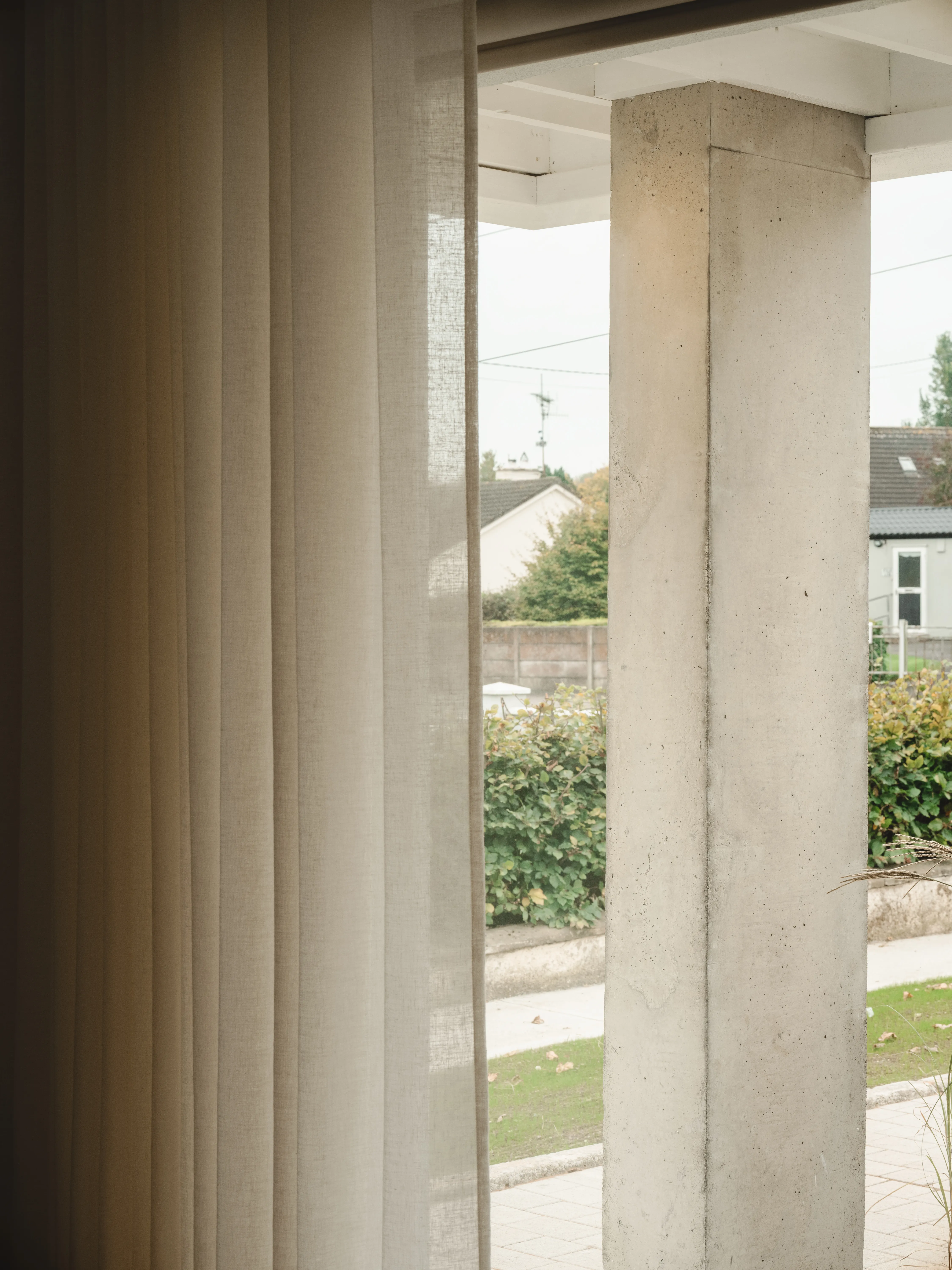 When it came to the palette of the home, some original materials such as the white rendered walls were retained, while new concrete and timber elements were added, and the roof tiles were replaced with black fibre cement slates. All building work was carried out by Kieran Walsh Construction.