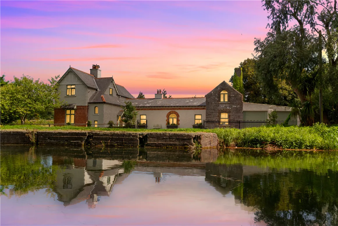 An enchanting reminder of times gone by, the property dates back to the 1800s when, in 1865, the barges from Dublin would deliver coal to the site which in turn supplied heating and lighting to the town. Extensively renovated and modernised over the years, the home now incorporates the original gas manager’s cottage and office building with a new, light-filled vaulted family room at the centre of the home.