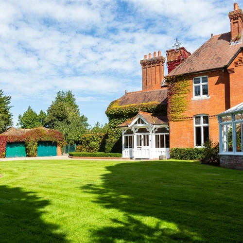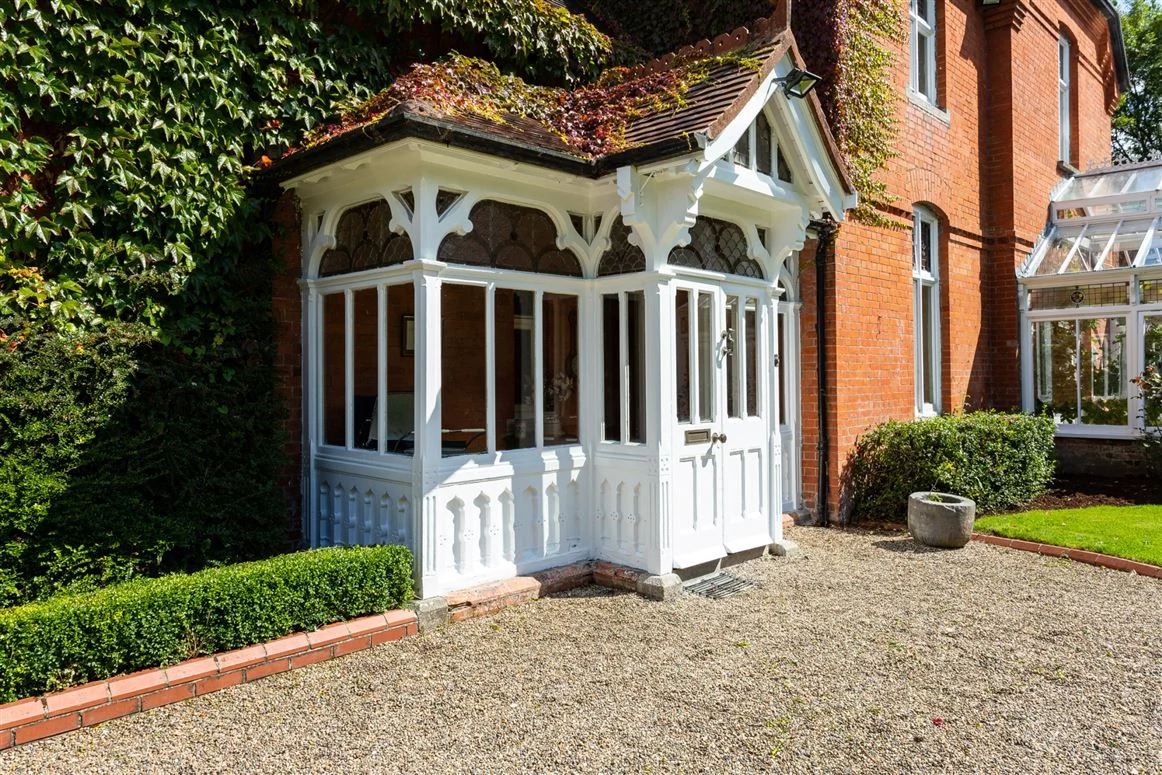 Outside, the grounds showcase the care and attention that goes into every aspect of the property with manicured lawns providing the perfect backdrop for leisurely strolls. Border shrubs add texture and colour to the grounds, while mature trees provide privacy. Nestled within the garden, a small pond creates a peaceful focal point. The property also boasts several apple trees. As an added bonus, the exterior of the home features Virginia creeper, which adorns the walls and adds a touch of romantic charm. The Virginia creeper’s leaves turn a beautiful crimson hue in Autumn, creating a stunning contrast against the red-brick residence.