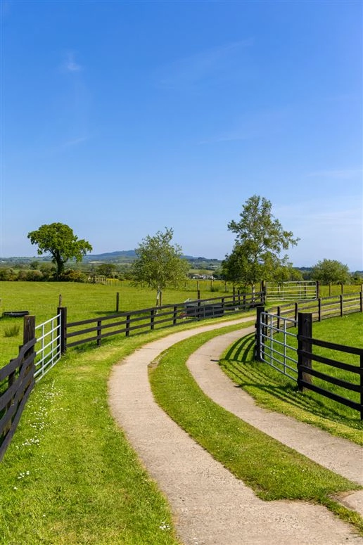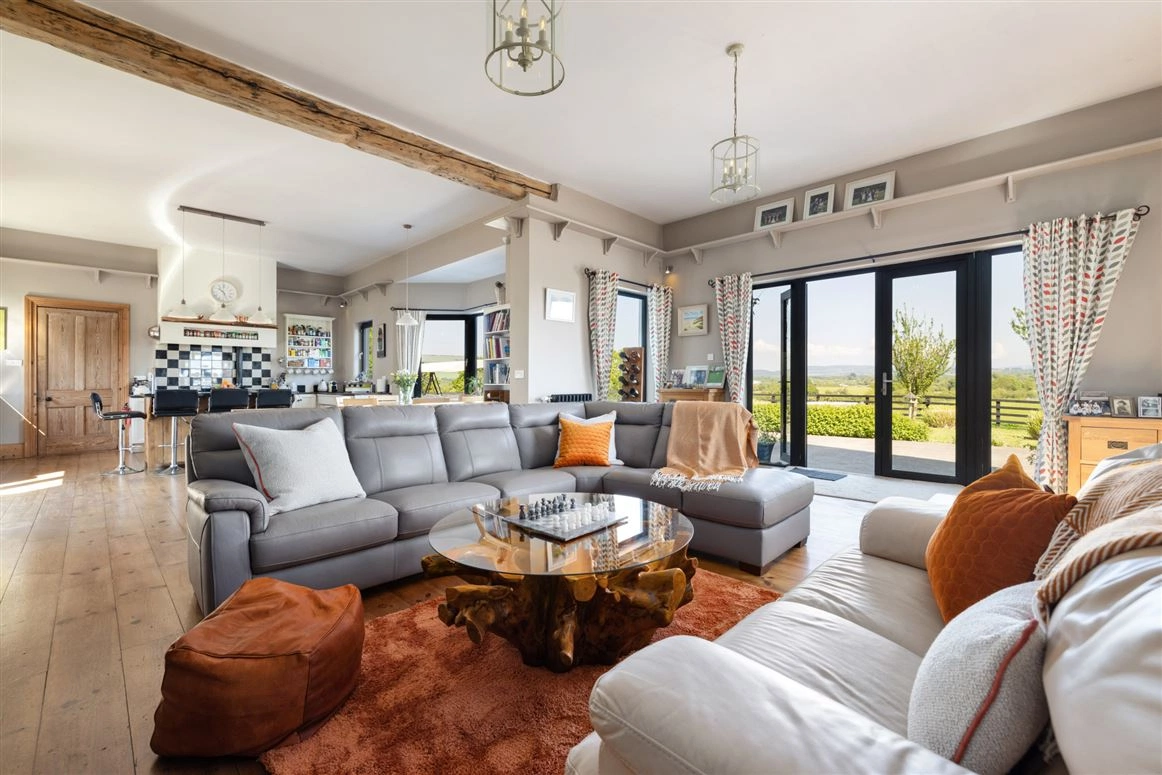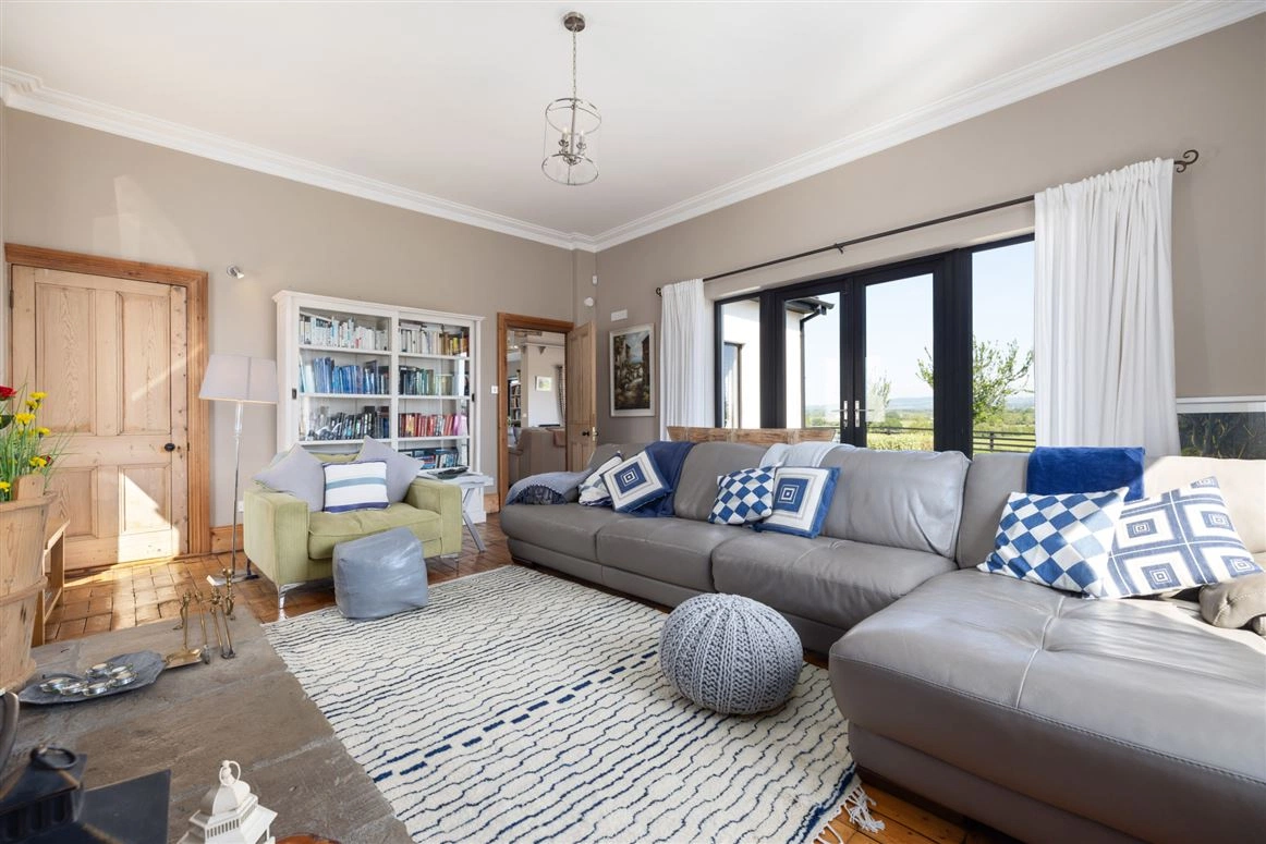 Nestled behind electric gates in a beautiful rural location, the property is approached via a sweeping 300m gravel driveway. Inside, the accommodation comprises an entrance hall, living room, family room, kitchen/dining room, utility room, pantry, study, playroom, five bedrooms and five bathrooms.