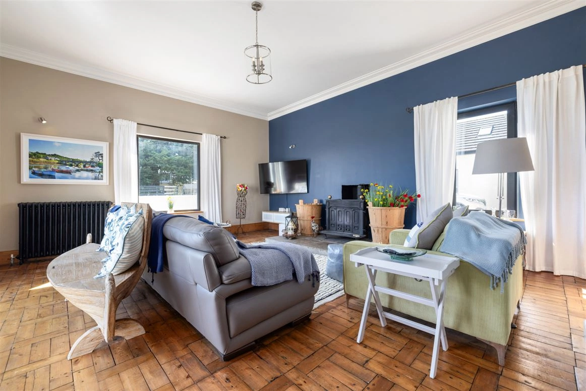 The heart of the home is the wonderful kitchen/dining/living room which features a cosy open fireplace for friends and family to gather around. Reclaimed wooden floors have been fitted in the living room with other highlights including a stove in the centre of the room and French doors to the garden.