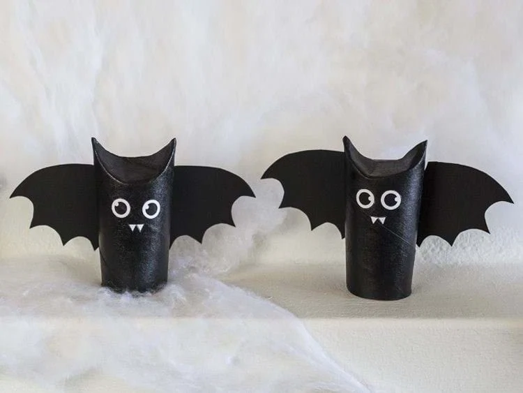 You can still decorate for a party even if it’s only going to be for just the family. Sostrene Green has a very simple bat creation, made using a cardboard toilet roll centre, black paint, black paper and some glue.