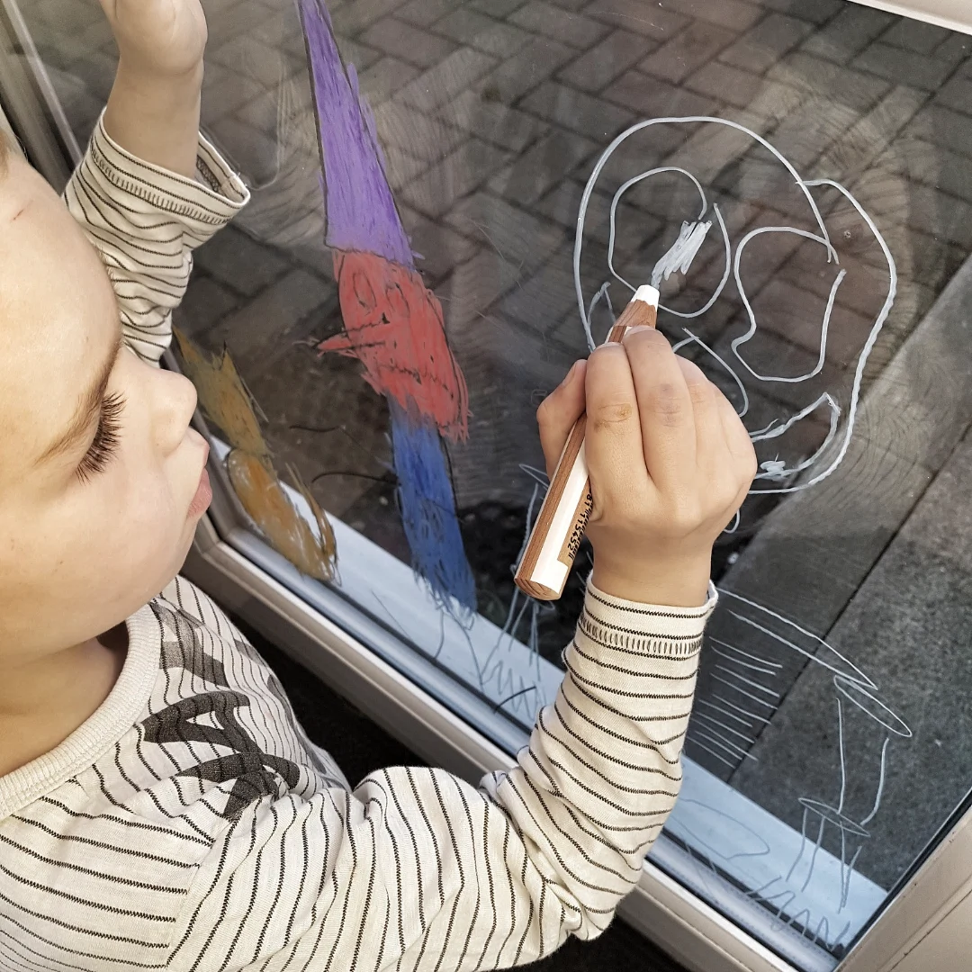 They give strong, vibrant colours that can be easily wiped off again so they can create their own pumpkin or even help with the decorating by doodling some spooky dudes on the windows.
