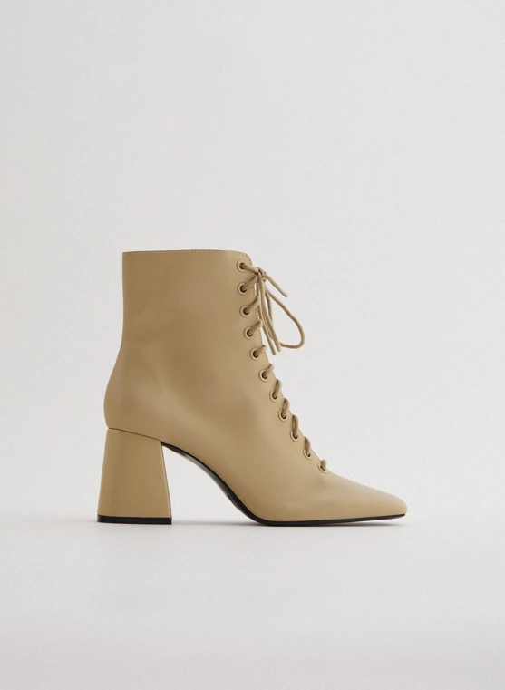 Lace-up leather high heel ankle boots, €59.95 at Zara