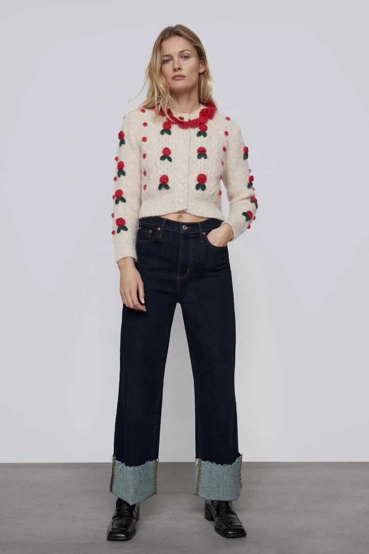 Knit cardigan with floral details, €59.95 from Zara