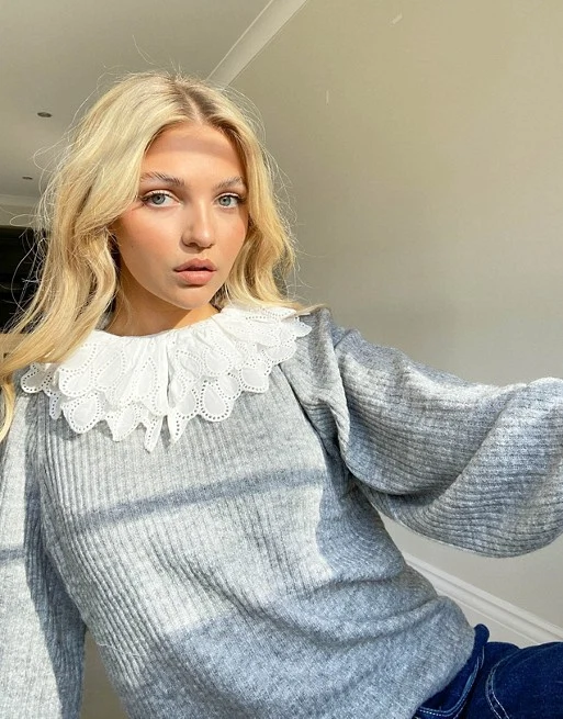 Object jumper with oversized collar in grey, €69.99 from ASOS