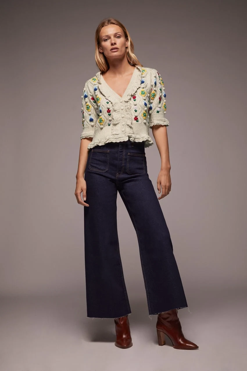 Knit cardigan with embroidered flowers, €49.95 from Zara