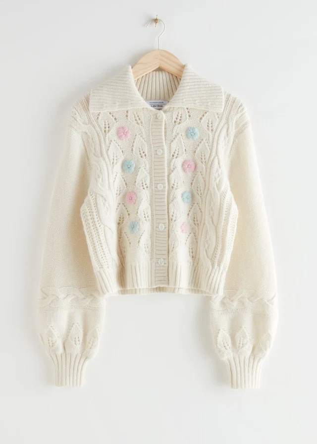 Floral Embroidery Cable Knit Alpaca Cardigan, €89 from & Other Stories