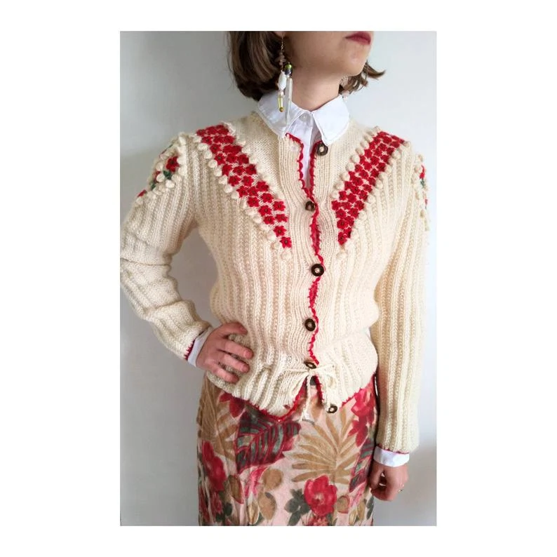 Hand knitted Austrian Tracht jacket, size XS, €198, available on Etsy