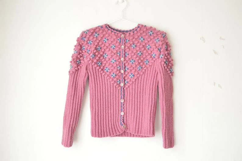 Austrian Cardigan – Pink Cable Knit with Flowers, €238 approx. from Sigrid Maria Vintage