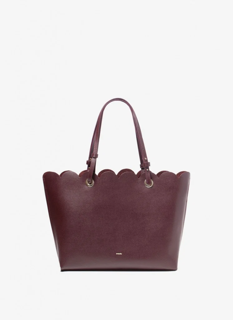 When choosing a classic accessory, it’s always a good idea to pick a piece that has a slight point of difference – an interesting detail that elevates it above those it sits alongside. The scalloped edge of this burgundy leather tote does just that. The bag is classic without being samey.