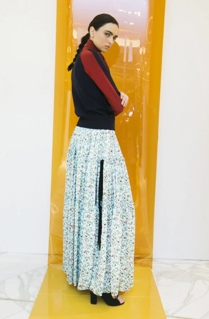 This spring also saw a stronger contingent of established bloggers with phones at the ready and updating their followers of proceedings as it happened. Anouska Proetta-Brandon and recent Late Late Show guest Sin?ad Burke were among the influential contingent. Burke’s stand-outs? Erdem for his intelligent inspiration which this season came from the late 19th century, “when Abraham Lincoln passed the Homestead Act. This legislation meant that single women and widows could own a plot of land, if they remained there for five years. An influx of women travelled from all over the world, including Ireland, to western America but few were prepared for the isolation and rural landscape. It brought about ?prarie madness?, whereby women and children became physically and mentally unwell due to the alternate living conditions. It’s a dark narrative for a classroom but even more so for the runway. I was fascinated by Erdem’s interpretation of that historical moment when the collection showcased in London but it was a real treat to see it up-close in Brown Thomas.”