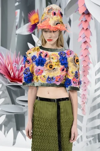 This year’s Spring/Summer collection was presented in a ?greenhouse? with a custom-built hothouse installed in the Grand Palais venue. Male models played the role of gardeners while models almost bloomed forth, wearing intricate creations embroidered?with flowers. In this greenhouse colourful crop tops and low-slung skirts were the uniform of choice, while the Chanel tweed suit made its requisite appearance. Also, can we just have a moment of astounded silence to appreciate all those hats? The beanies were a personal favourite, reminding us of last year’s shopping aisle meets street style efforts. However, the coup de gr?ce was the finale of a bride followed by men bearing her bouquet.