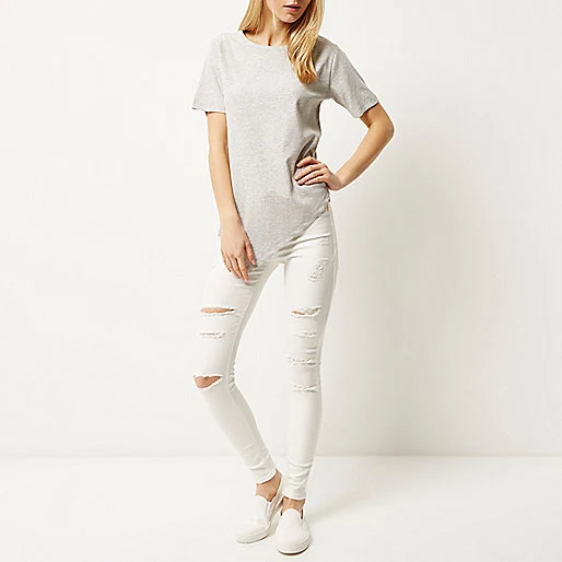 Toughen up white denim by opting for a distressed pair. Great for weekend wear, pair them with trainers and an oversized sweatshirt. You can style them up for evening too with a silk tee and blazer (go for a shade softer than black).