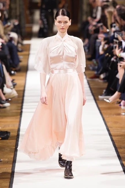It was a quintessentially French collection at Lanvin this week, and what could be better than that? Creative director Bouchra Jarrar has had no difficulty defining her own point of view at the iconic French fashion house after the outrageously successful tenure of her predecessor Alber Elbaz. Despite an?unapologetically feminine?collection dominated by layers of tulle, masses of ruffles and sheaths of sheer chiffon in shades of buttercream and blush, nothing about the pieces felt fussy or contrived. There was a beautiful languidness to the collection, in fact. The French make everything look easy.