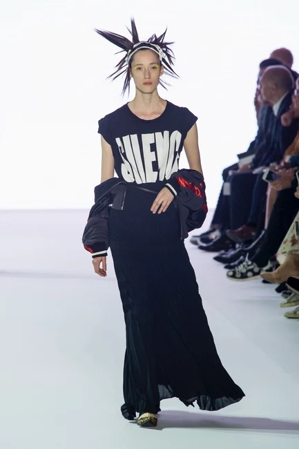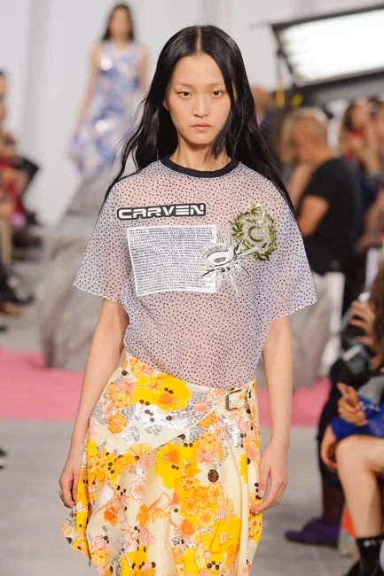 Carven kept it simple and adorned pretty sheer T-shirts with its own logo. I’d like to read the small print through …