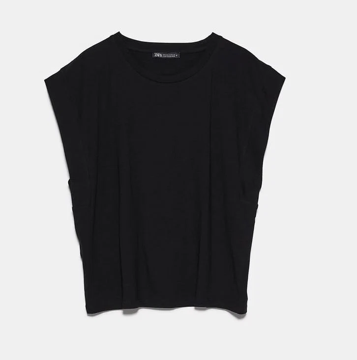 Set to be this summer’s most popular top, meet the sleeveless padded shoulder t-shirt.