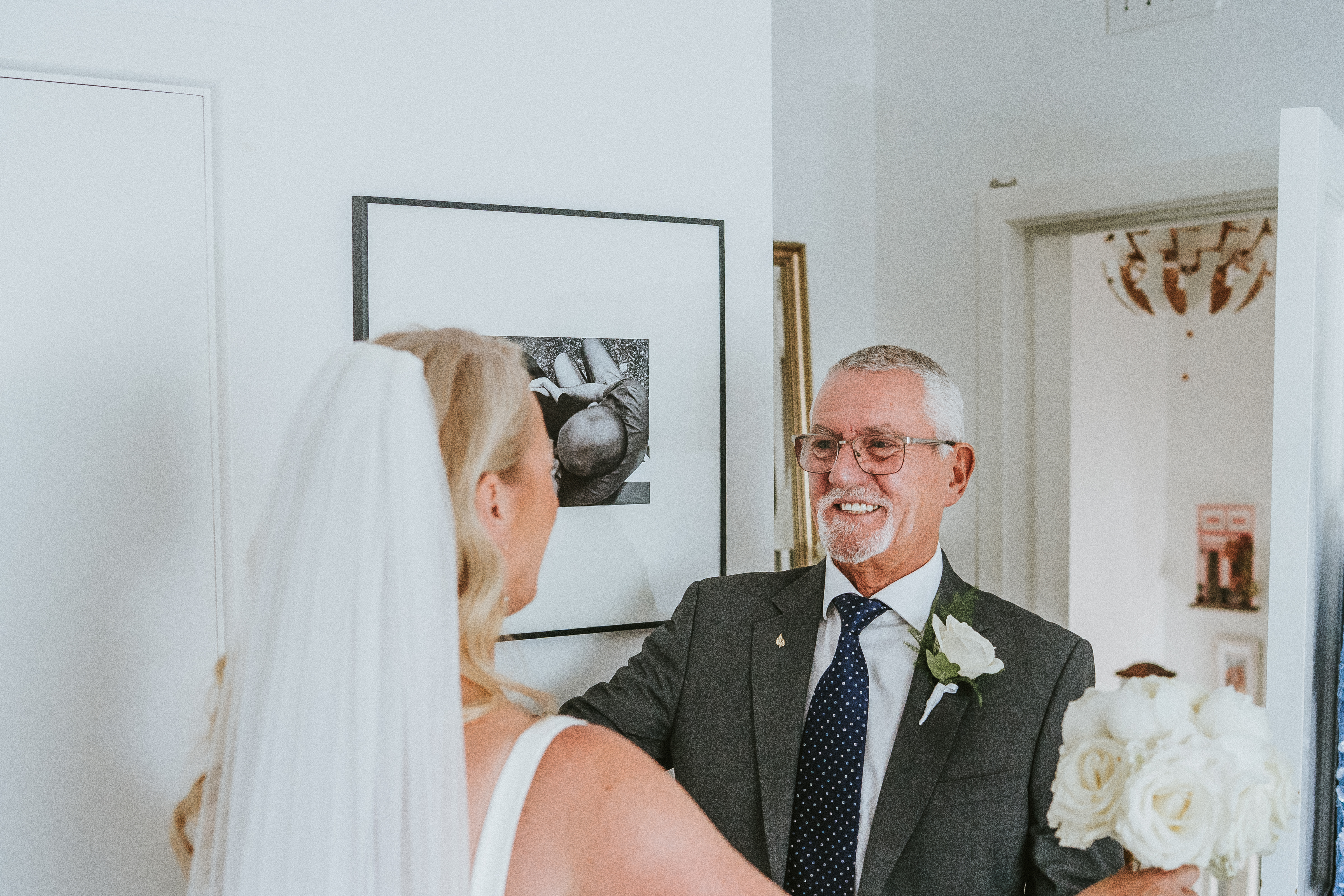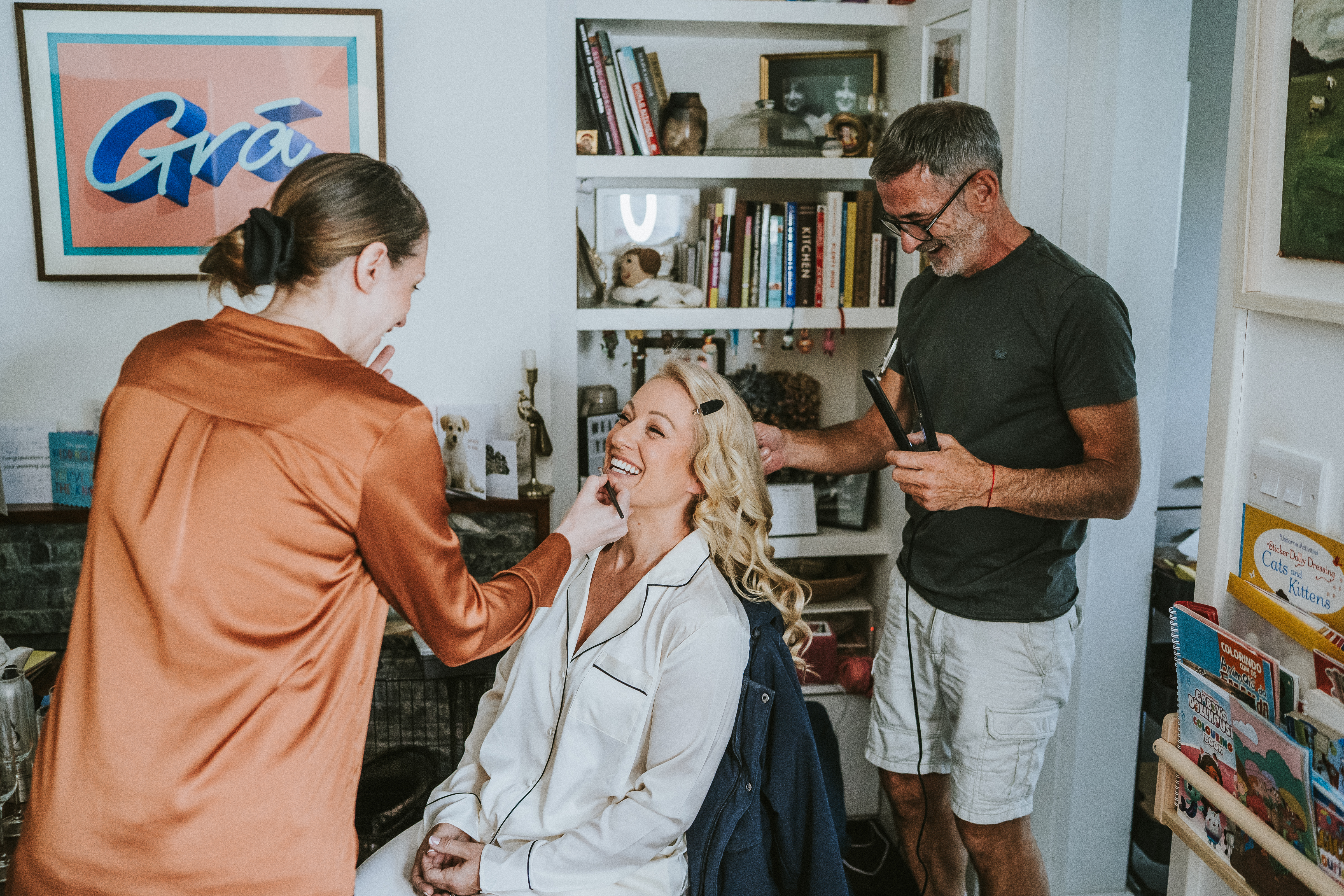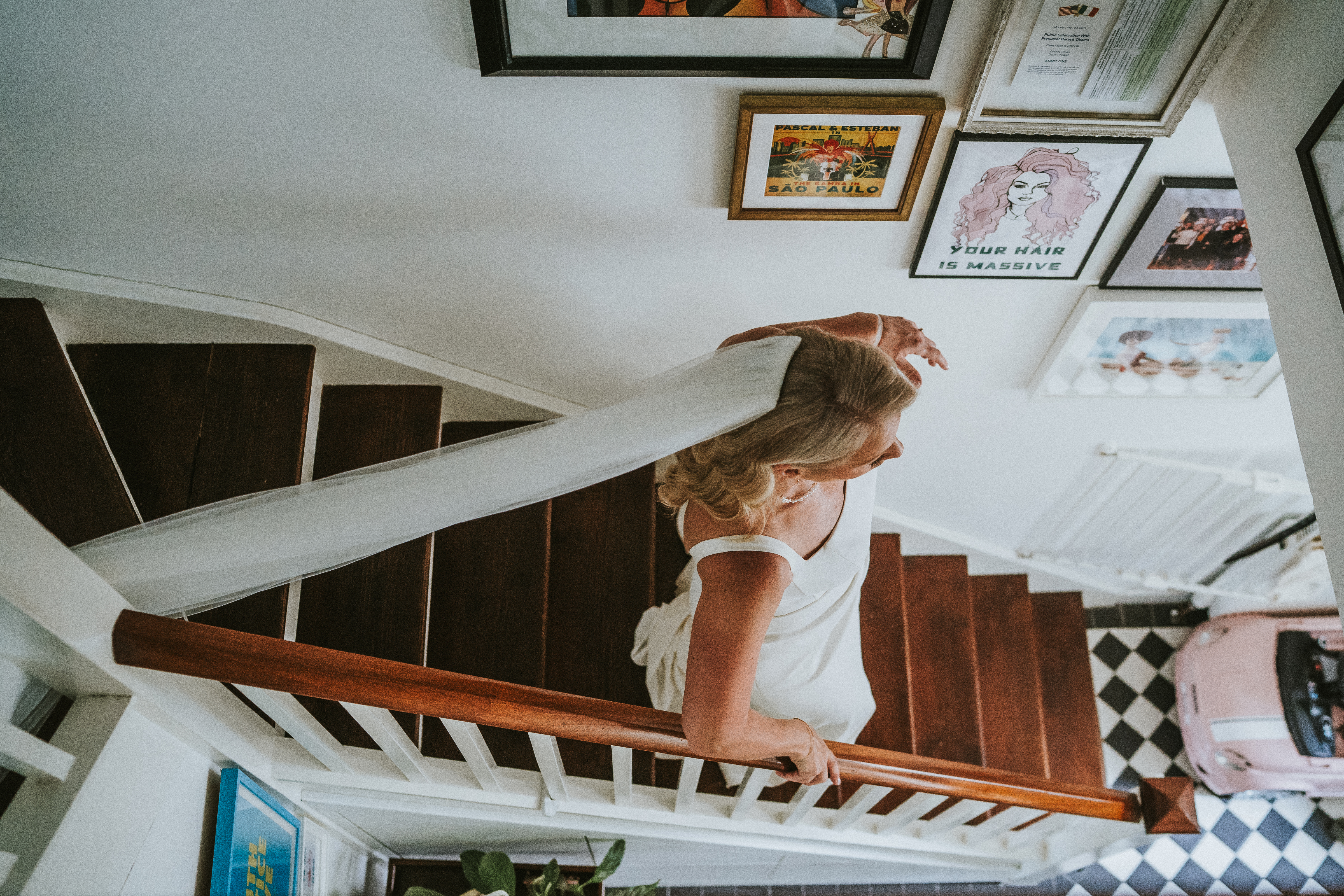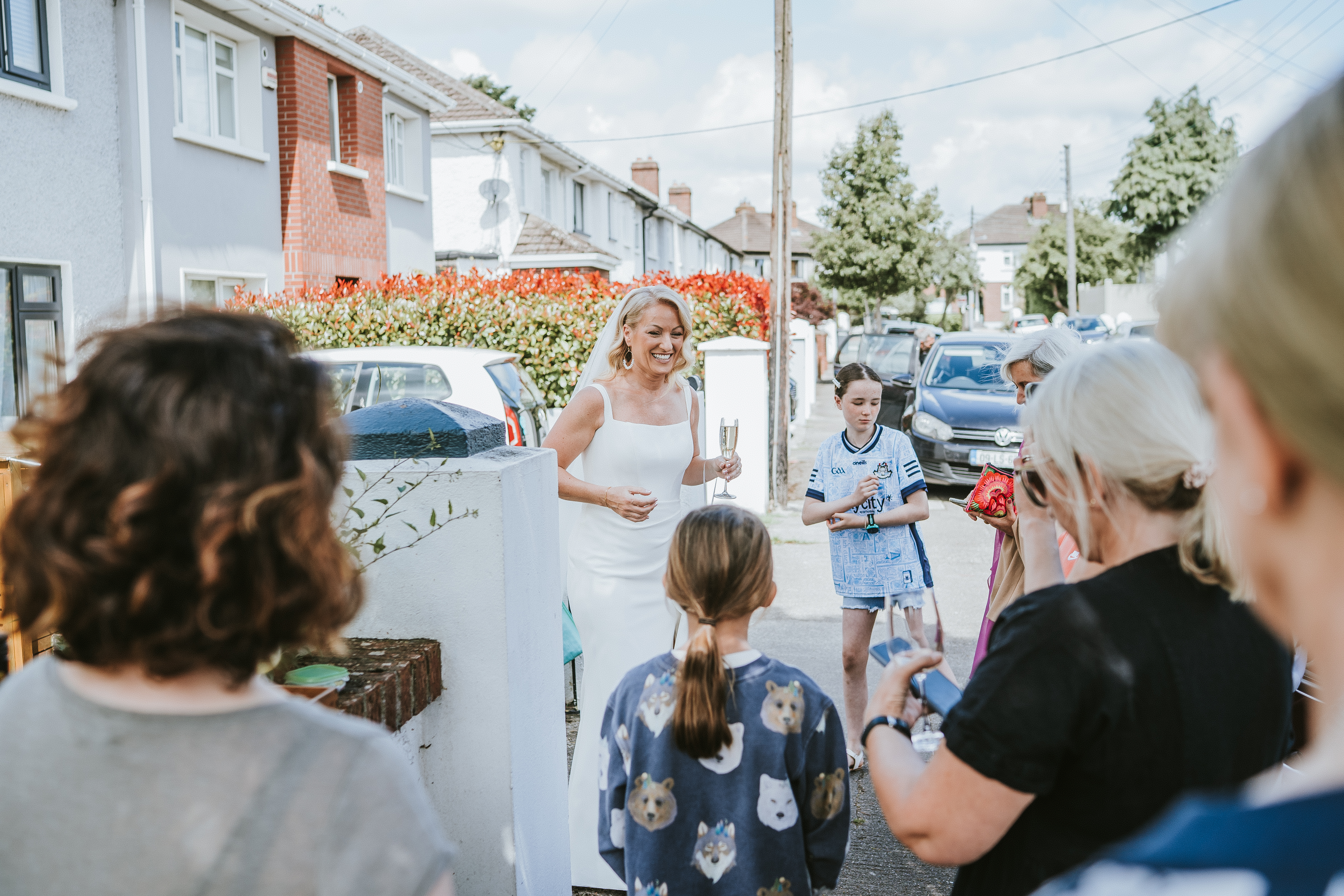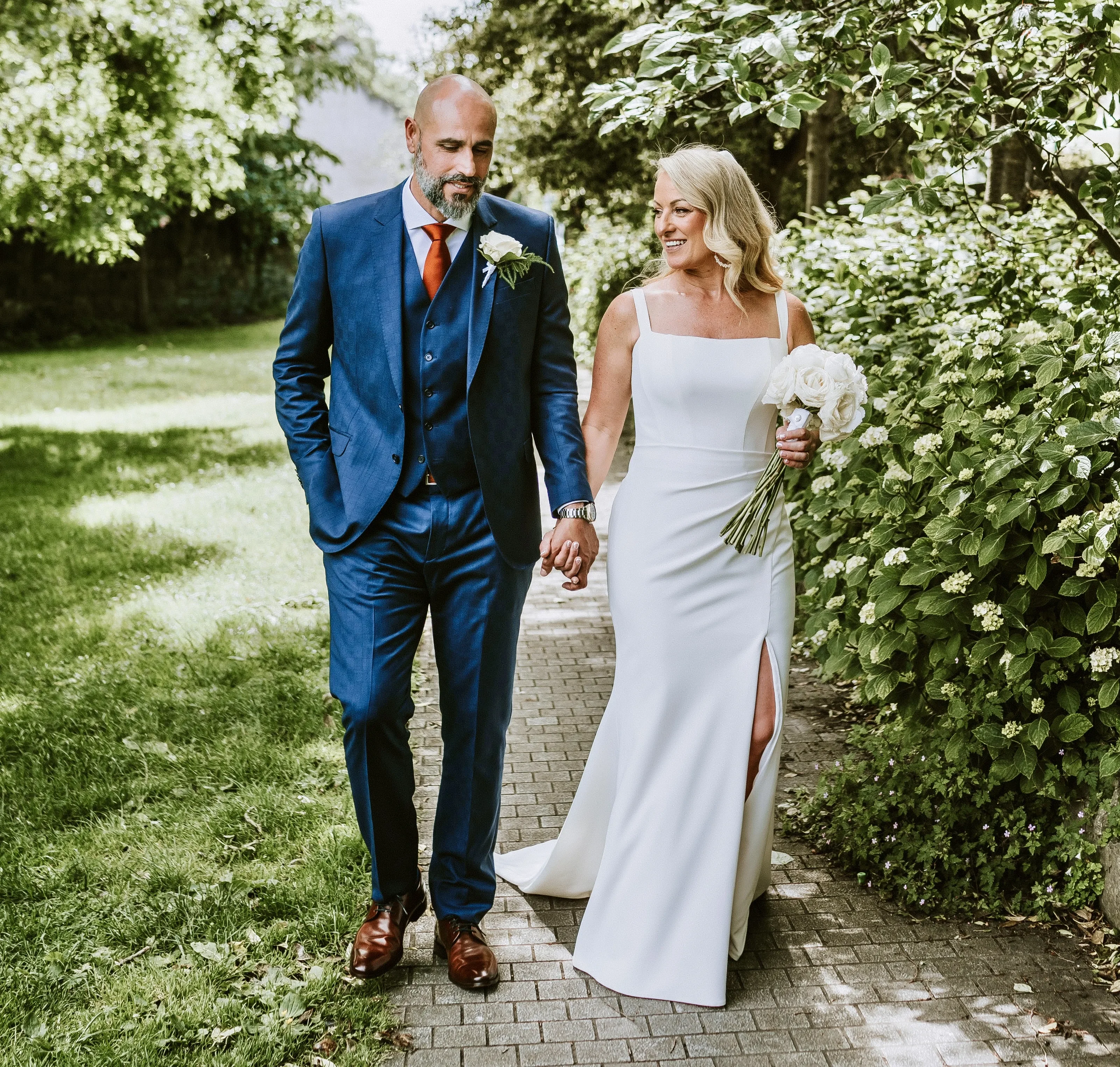 Bridal outfit: Ivory & Pearl. Groom’s suit: Made in Brazil. Florist: Ginkgo Florists. Hair: Kevin Hogan, The Company Hair Salon. Make-up: Dearbhla Keenan, Brown Sugar. Dress alterations: Aoife O’Broin. Videographer: Max Barry. Humanist Celebrant: Emma Sides. Custom-made earrings: One Dame Lane.