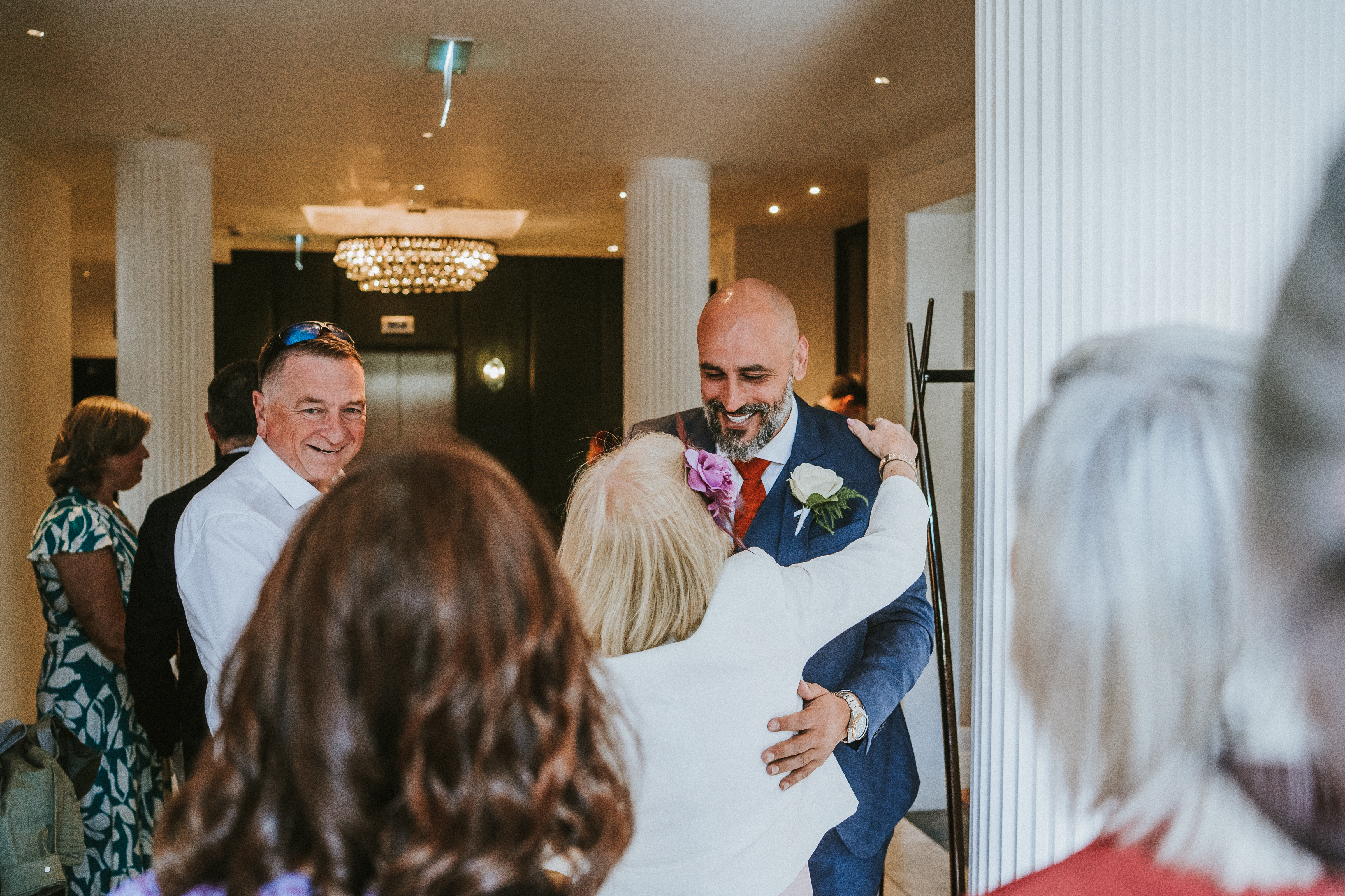 It was in The Dylan Hotel in Dublin. The rings were passed around to all 80 guests for a ring warming so that they could hold them for a few seconds and make a little good wish for us over them. I’m not sure it was that effective since Leo’s ended up at the bottom of the Forty Foot the next day. Ha! But it was lovely. Leo’s Aunt Luzia gave us a blessing during the ceremony. It was a Humanist ceremony, but some of Leo’s family are religious, so that was important to Leo, even more so that it was his aunt who did it. My cousin, Simone, wrote a poem for us, called This Love, which she read during the ceremony. Leo’s son, Matheus, read it in Portuguese.