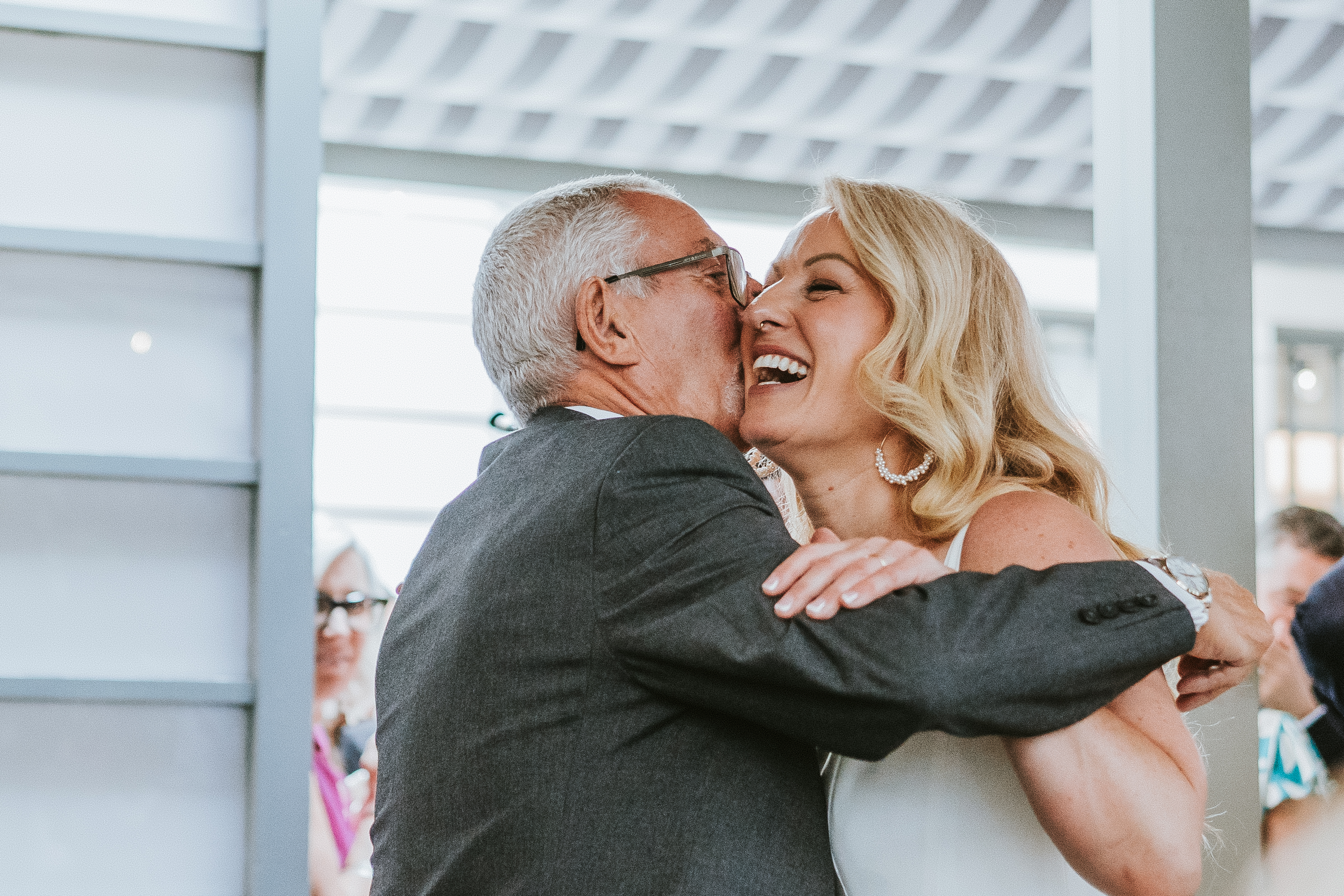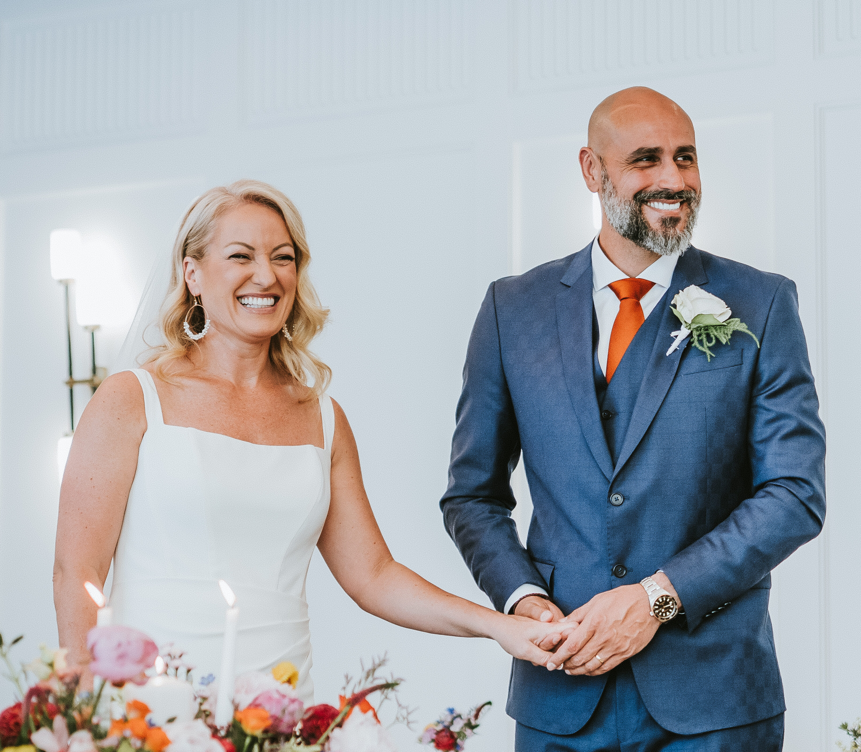 We had Leo’s friend, Renata, translate his mom’s speech and Luzia’s blessing, and it all worked out. Leo’s dad, who couldn’t be there, sent a special video message, singing Brazilian love songs on the guitar, which was very emotional for Leo. Leo’s cousin FaceTimed Leo’s brother and other family members so they could watch the ceremony in real time