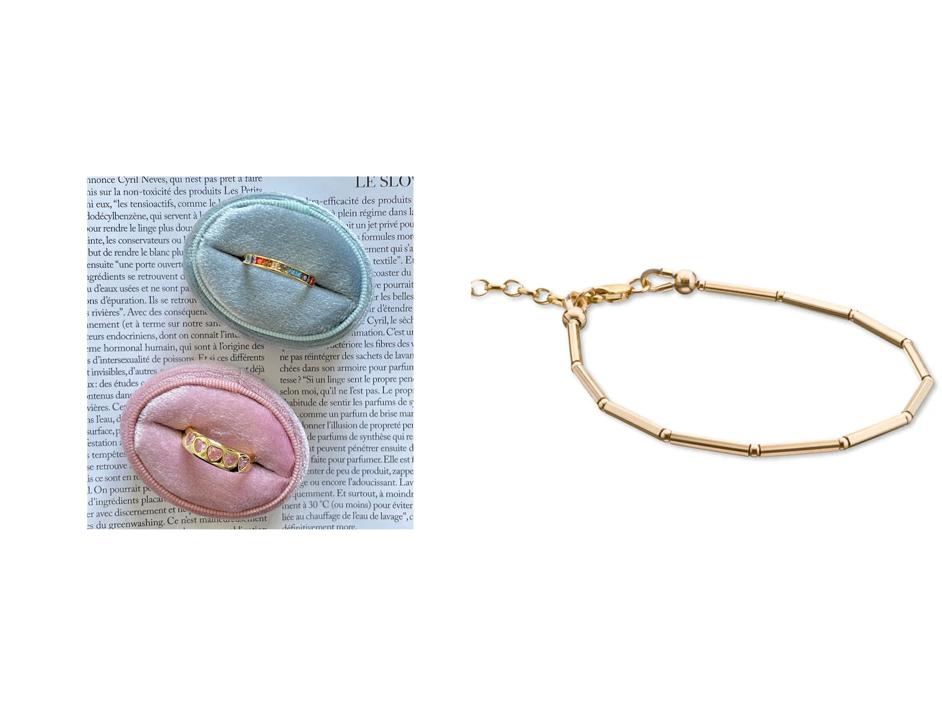 GABSLUK Love Ring, €90 | Scribble & Stone 14kt Goldfill Linear Bracelet, €119