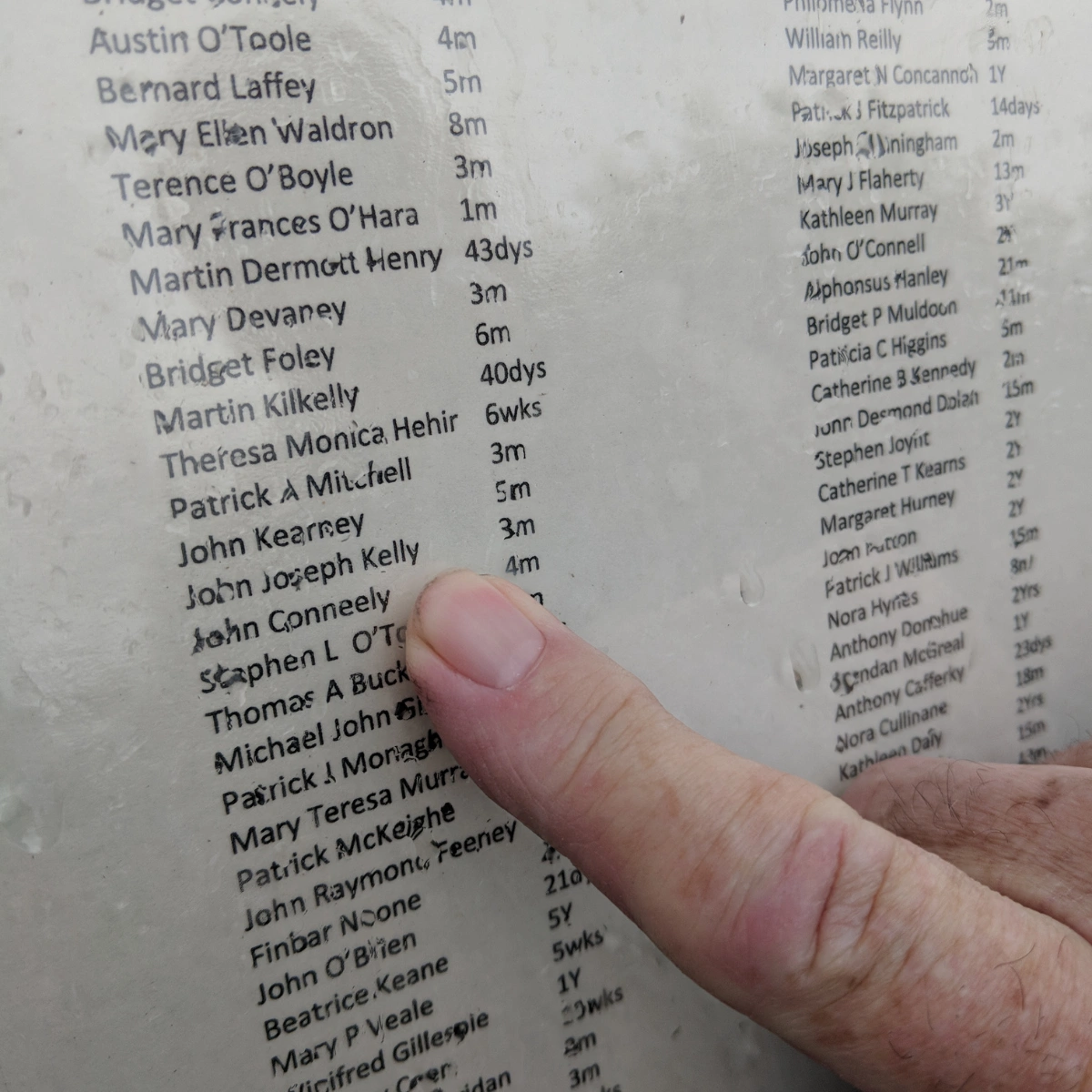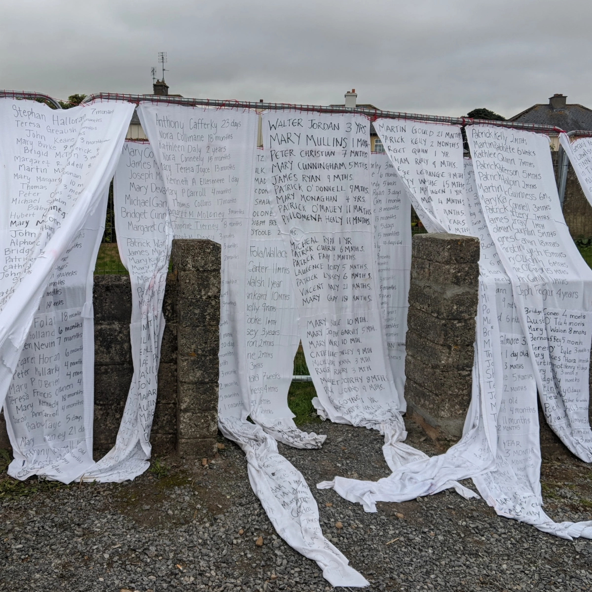 On the outside of the hoarding, someone had stuck pieces of A4 paper, laminated but still stained with rain, with the names of the hundreds of children who died there typed in neat rows, along with their ages.