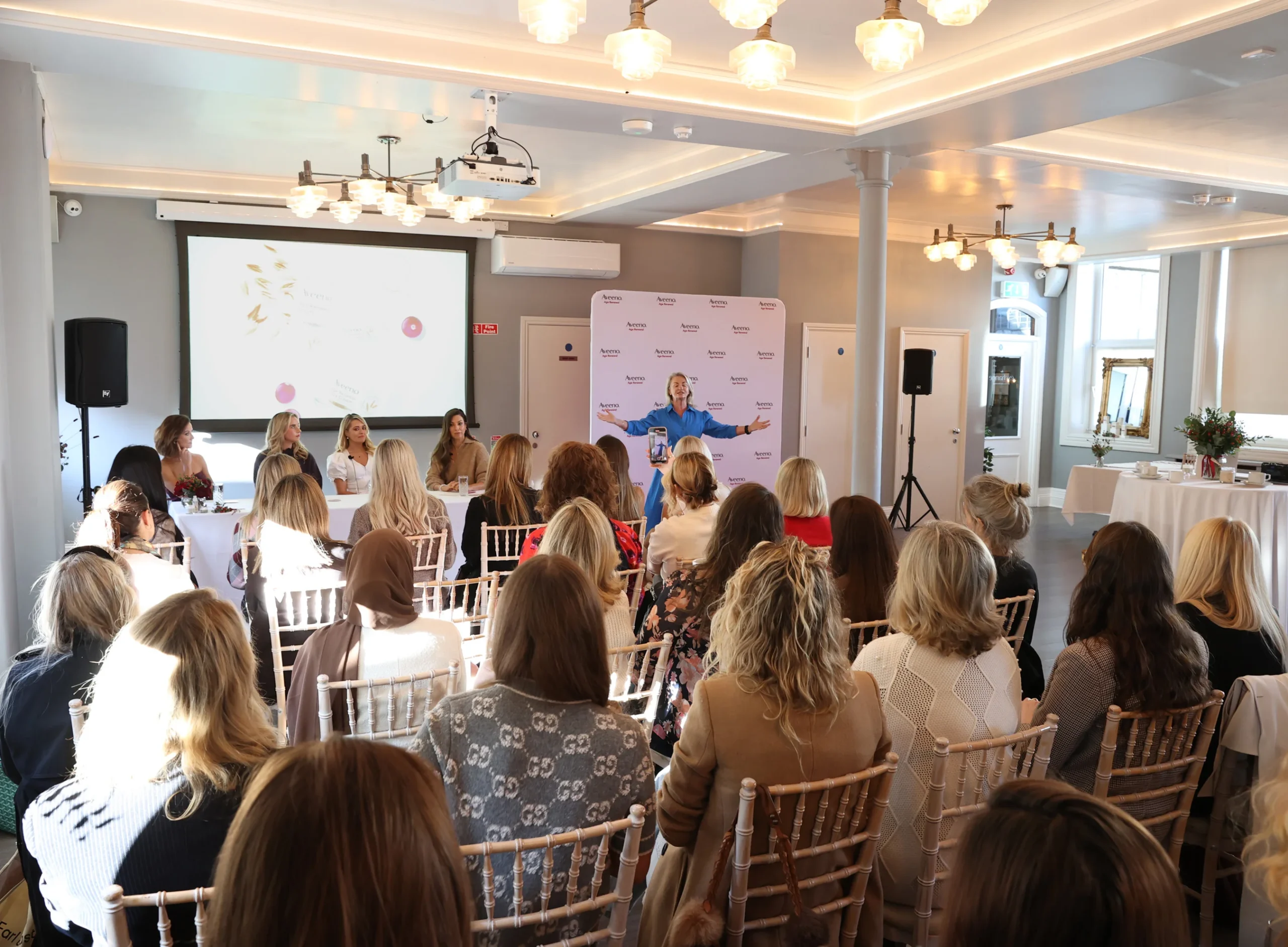 Hosted by Georgie Crawford, the launch of the Aveeno Age Renewal skincare range at Fallon & Byrne saw the wellness speaker, author and host of The Good Glow joined on a panel by psychologist and podcaster Dr Clodagh Campbell, presenter Jennifer Zamparelli, and athlete and content creator Aoibhinn Raleigh.