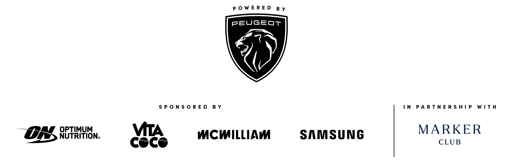 Powered By Peugeot and sponsored by McWilliam, Optimum Nutrition, Vita Coco, Samsung and in partnership with Marker Club.