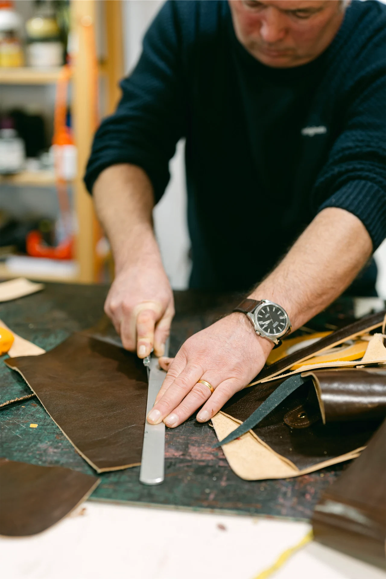 Championing green is also a huge part of what he does. All of his leather is ethically sourced and when he’s not creating, you can find him making important repairs. “In my line of work, I also get a lot of repairs, which is quite interesting. It keeps the products that we use in circulation.”