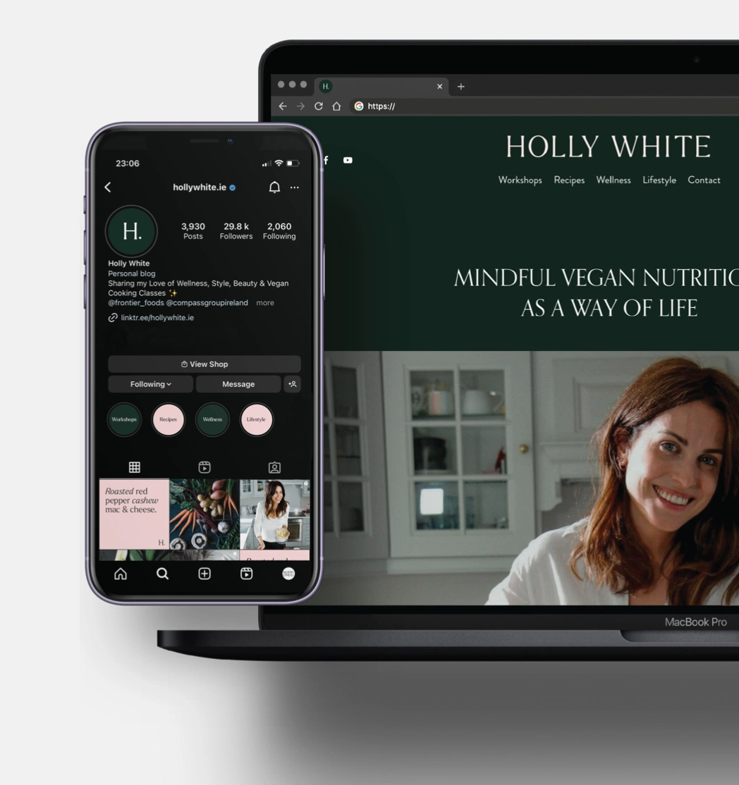 I’ve just finished working on… the rebrand and identity design for Holly White, a plant-based nutritionist, author and wellness advocate. At the moment I’m working on the rebrand for a large design organisation in Ireland. It’s a very exciting project and I love seeing these branding projects come to life.