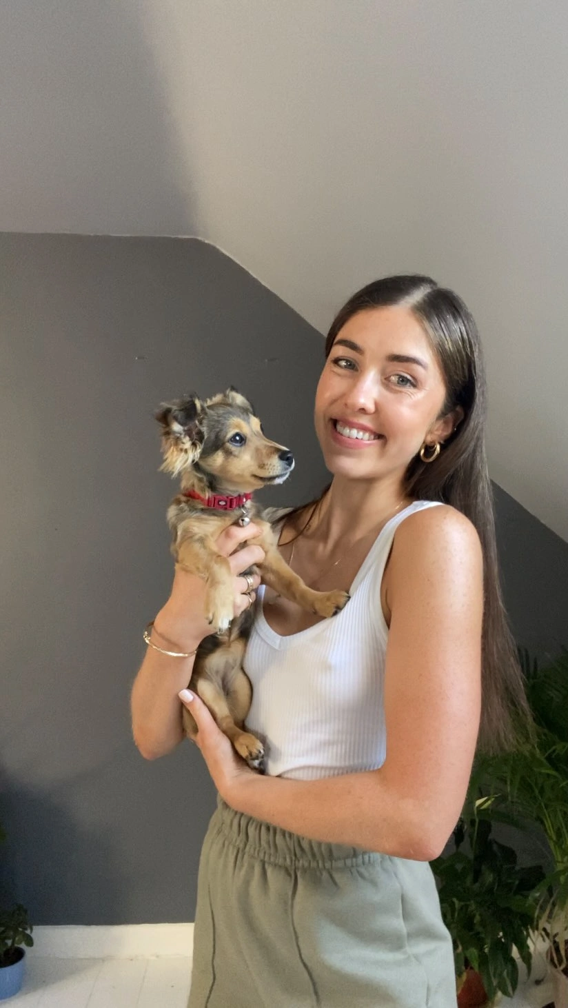 Before I go to bed, I’ll… bring Fig, my dog, out for one last wee. I always give her a tiny bit of peanut butter on a spoon before I head to bed too. I’ve been doing it since she was tiny, and she can’t wait to get into her crate because of it.