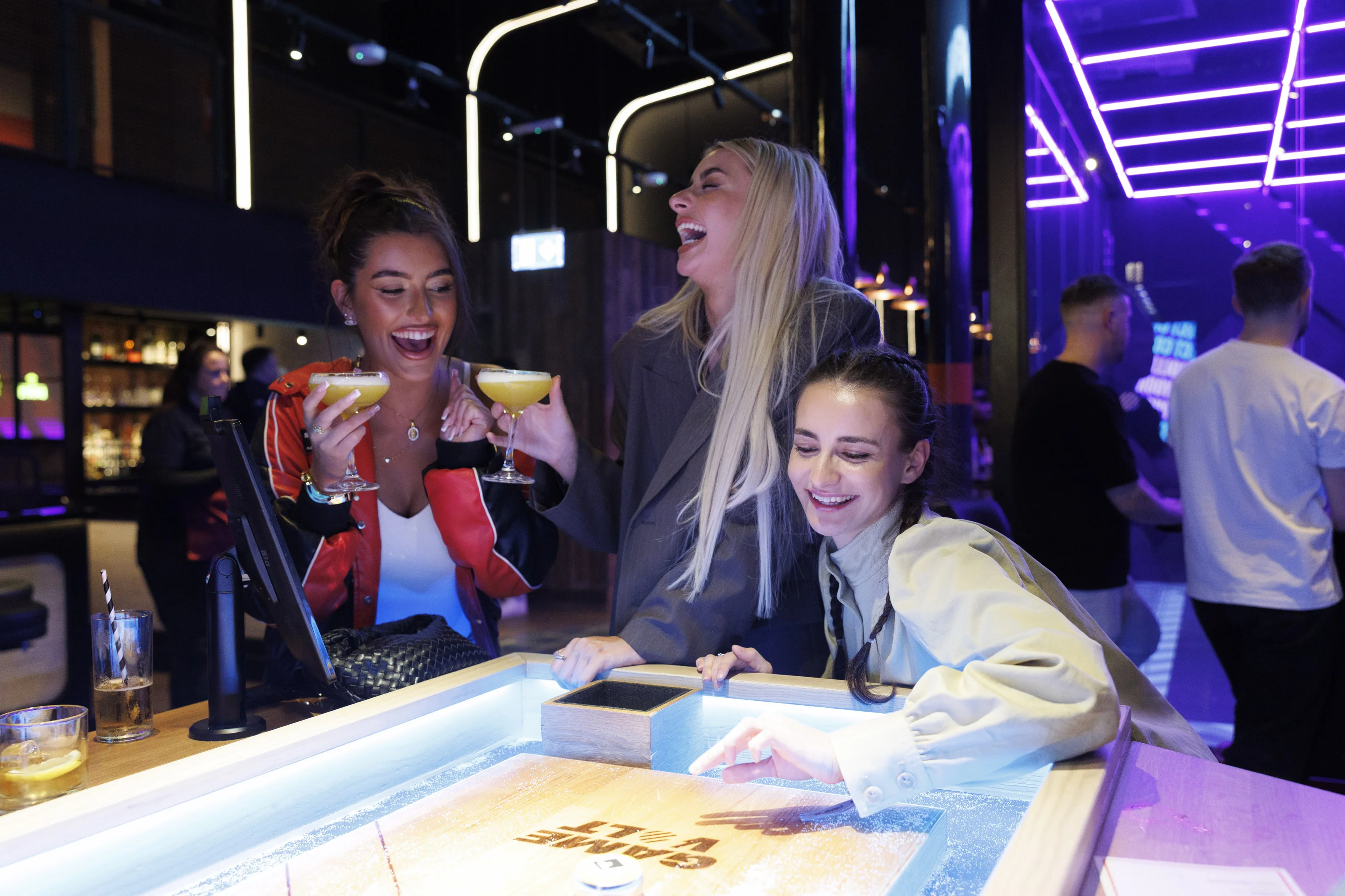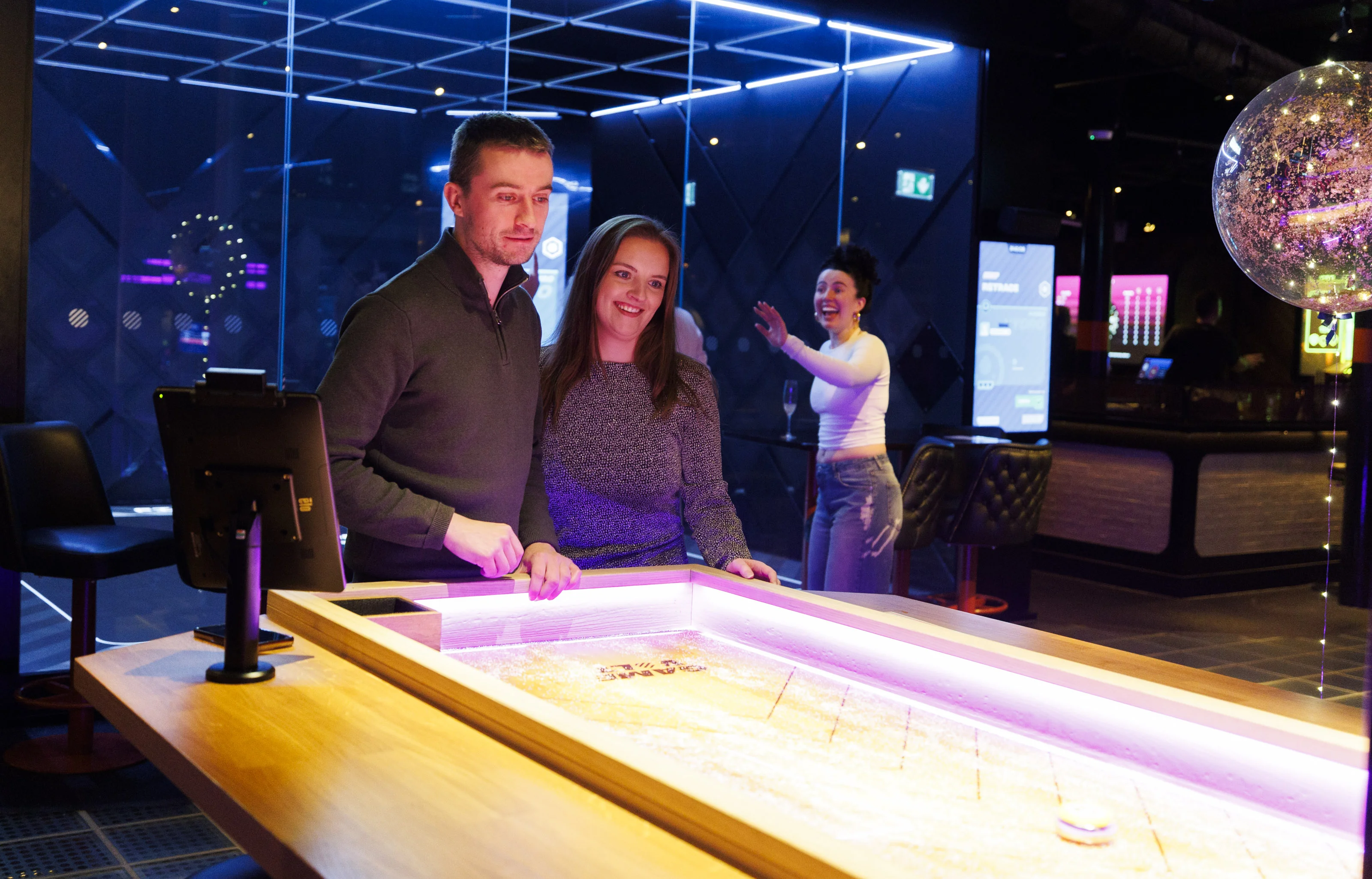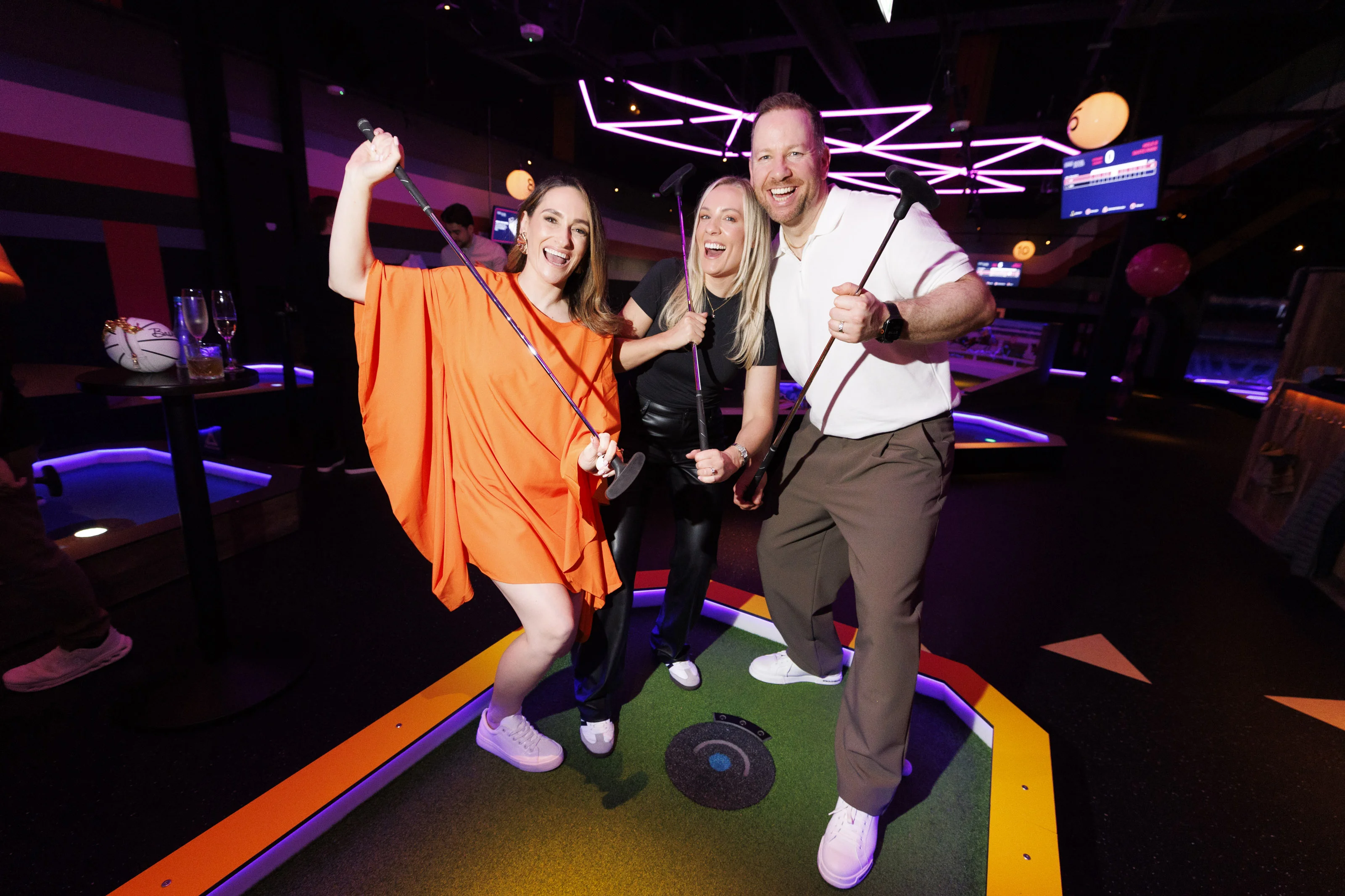 Super Social, Leopardstown’s beloved competitive socialising venue, celebrated its first birthday by welcoming a host of familiar faces from the worlds of comedy, social media and entertainment. Attendees had the chance to try their hand at activities such as NxGen Interactive Darts, 12 Holes of Ireland’s Highest-Tech Mini Golf and Supercharged Shuffleboards.