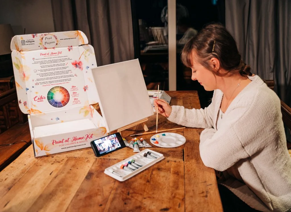Their at-home painting kits are packed with everything you need to have the same experience online with friends, family or co-workers.