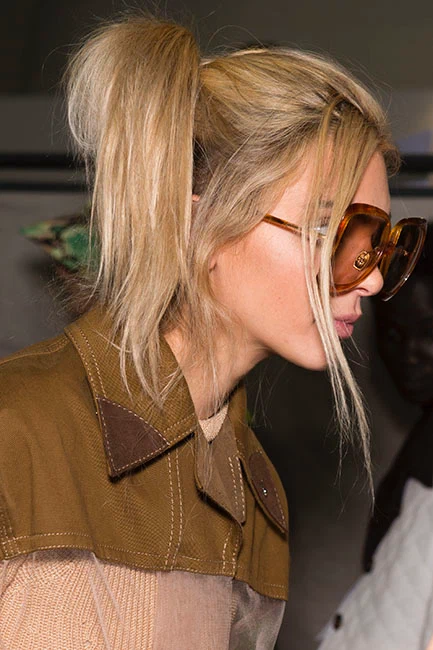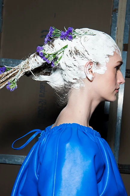 Regarding hair trends at Milan, Marni stole the show with sculptural, statuesque hair slicked backwards and forwards and sidewards and downwards with white paint and stuffed with flowers – not exactly a look you might be interested in replicating for say, a Monday meeting, but a work of art, to be sure.